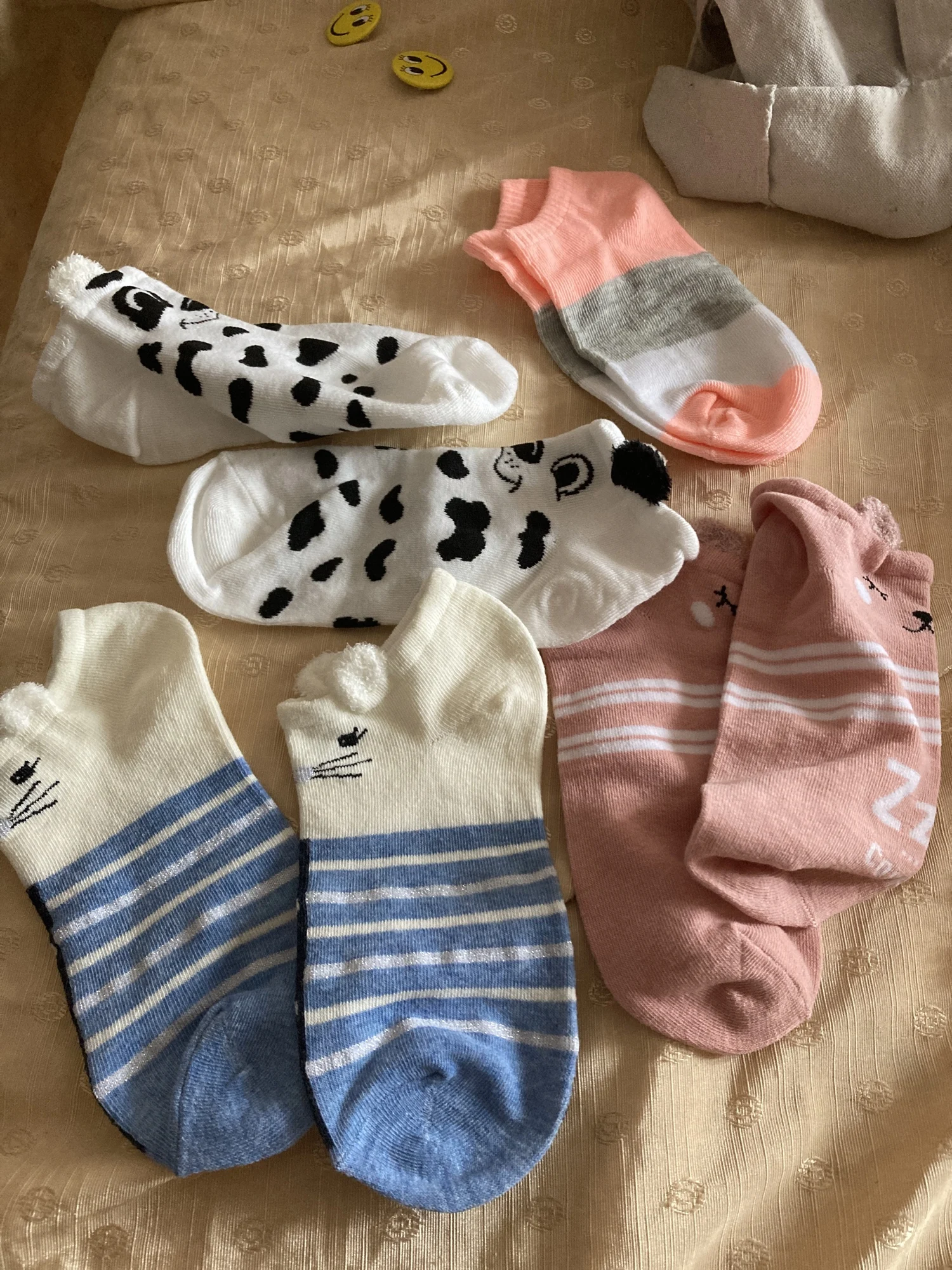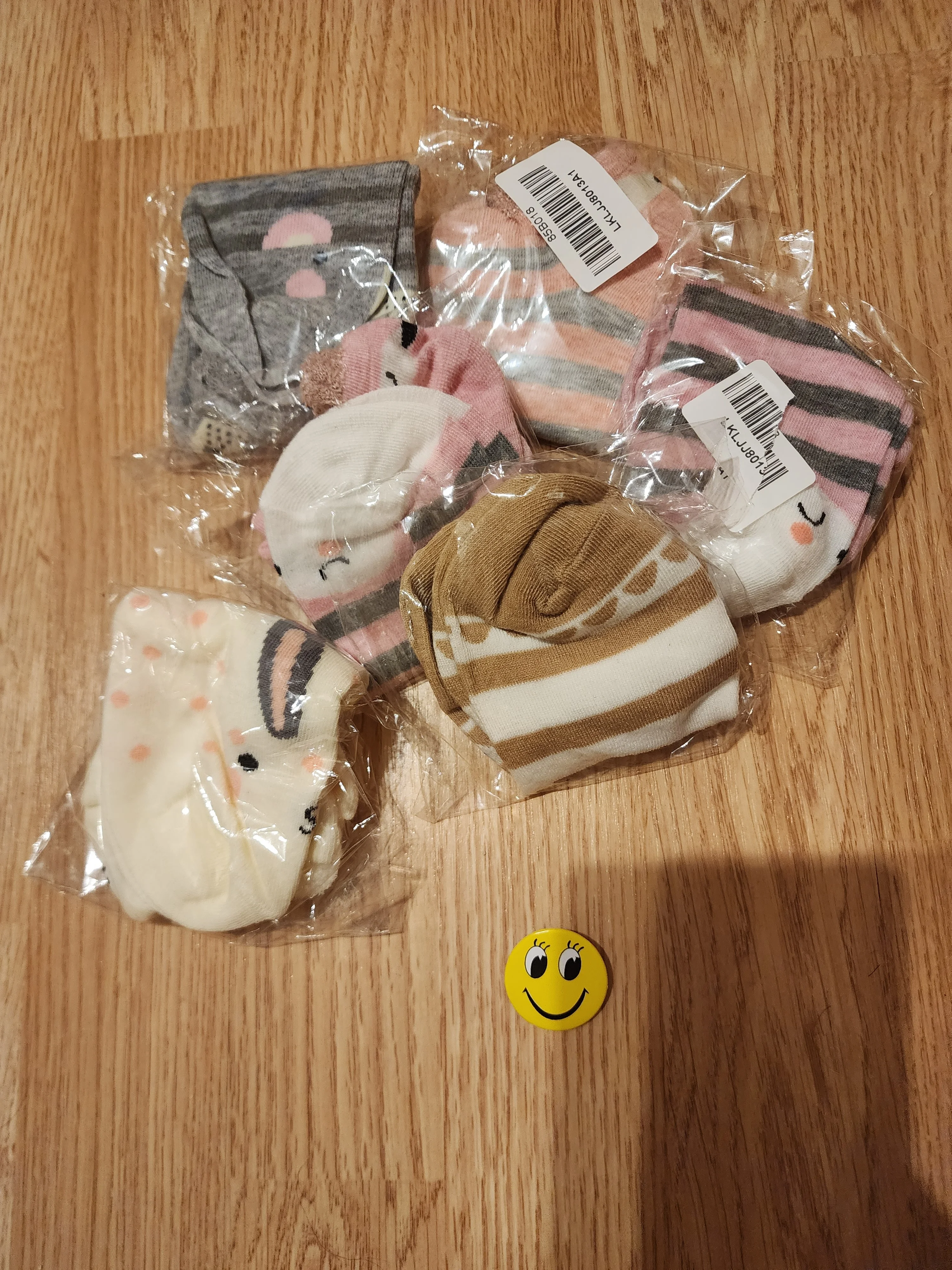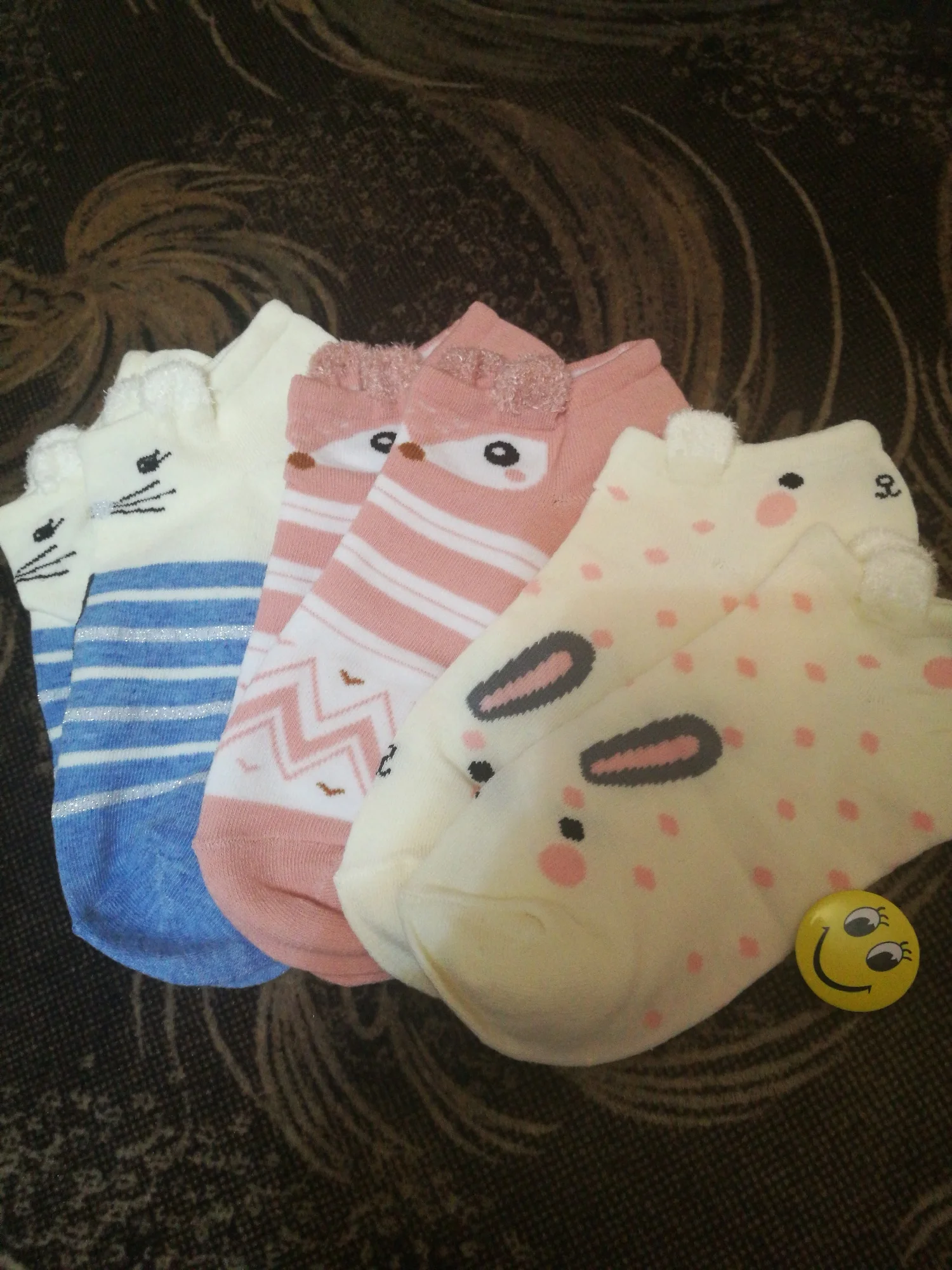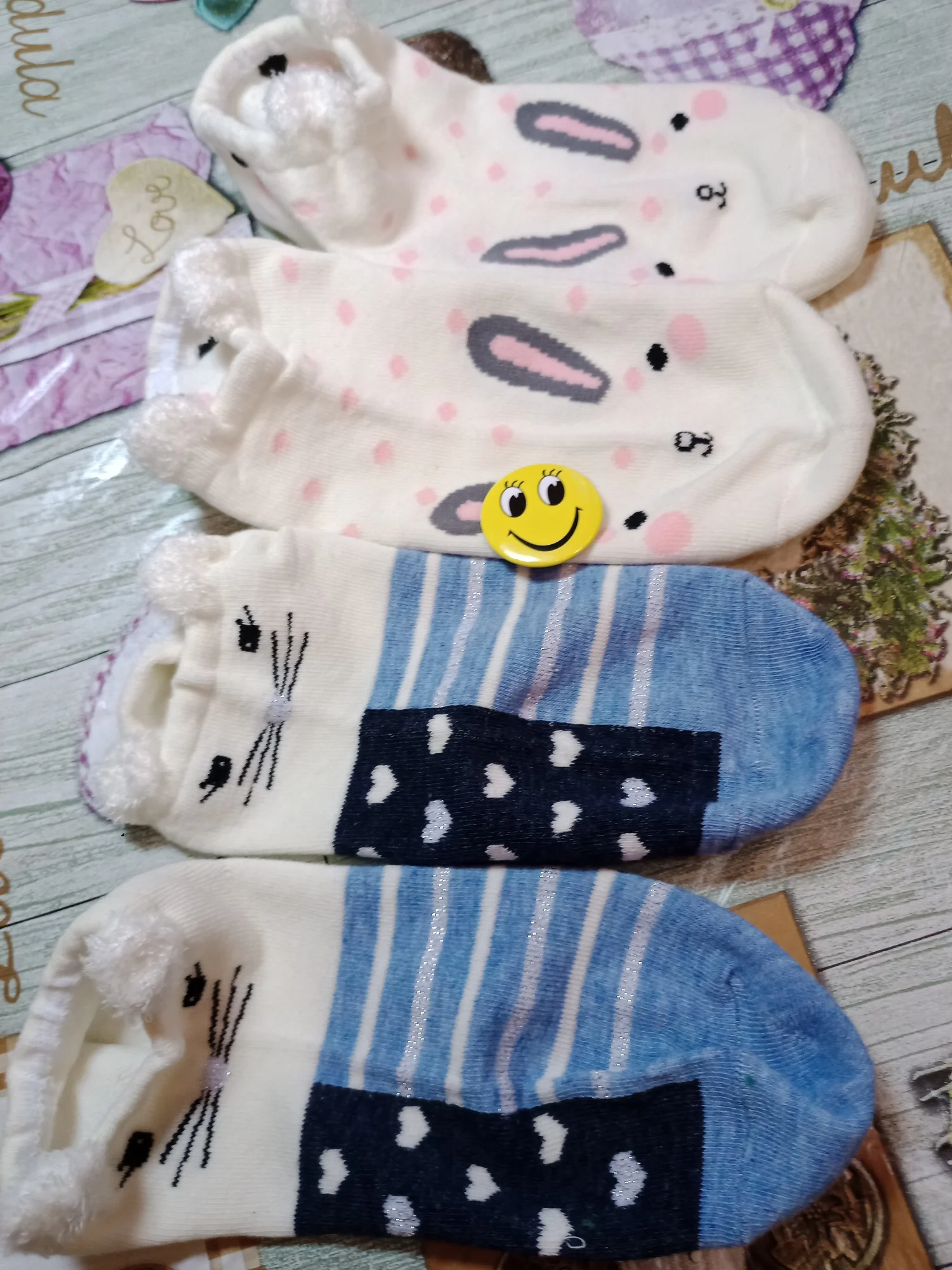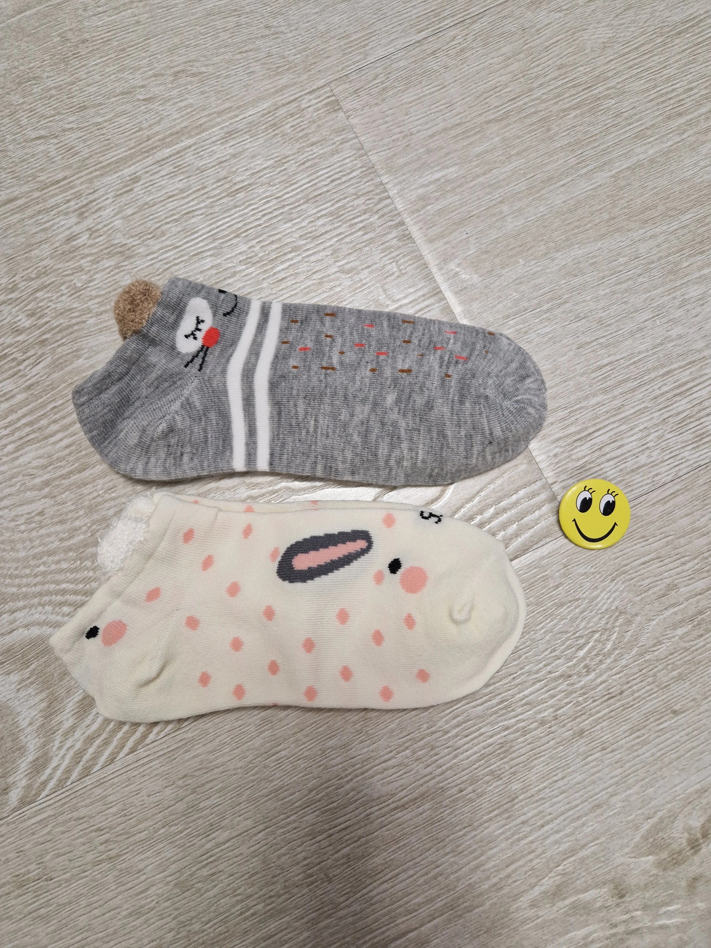 Носки хорошие, миленькие, тонкие. Положили маленький подарок значок виде смайлика. На линолеуме не скользят! Пришли в пакетике. Продавец хороший, носки рекомендую