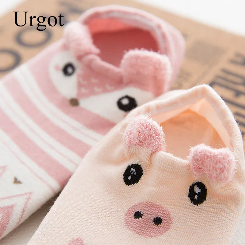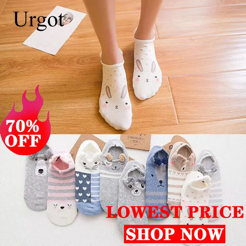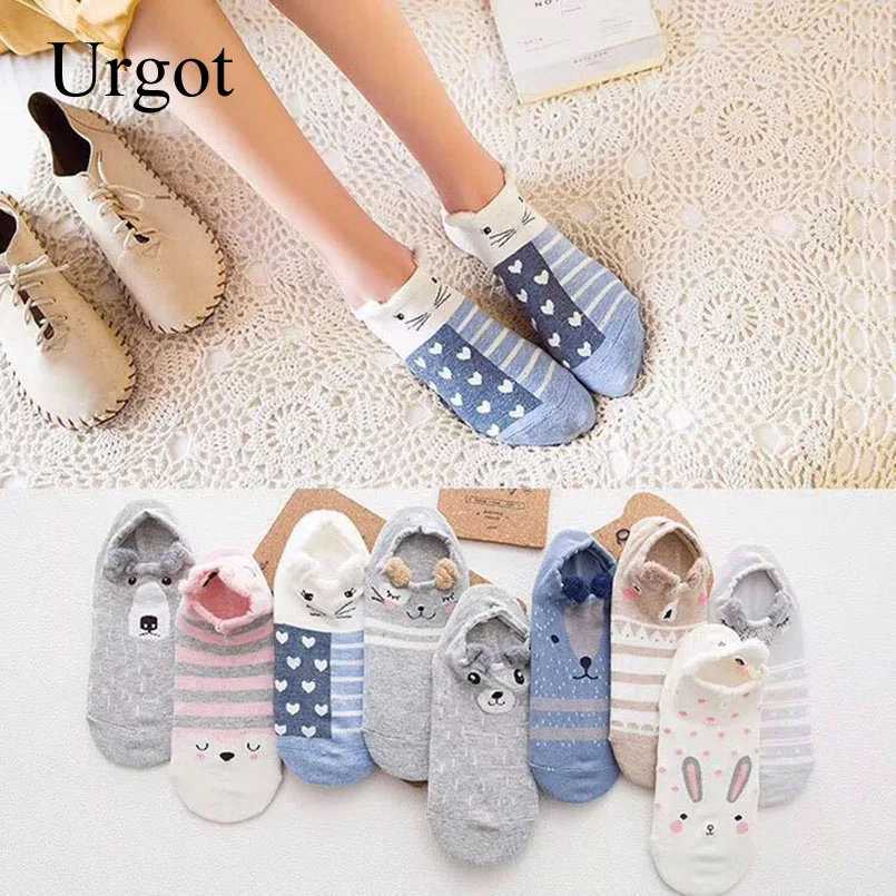 Хлопковые носки Urgot с милыми животными, женские летние короткие носки-тапочки с милыми кошками и собаками, женские повседневные Мягкие носки забавная лодка, Meias