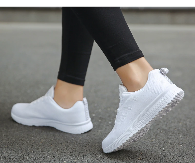 Кроссовки женские из дышащего сетчатого материала, повседневная обувь для ходьбы, плоская Вулканизированная подошва, спортивная обувь, белые
