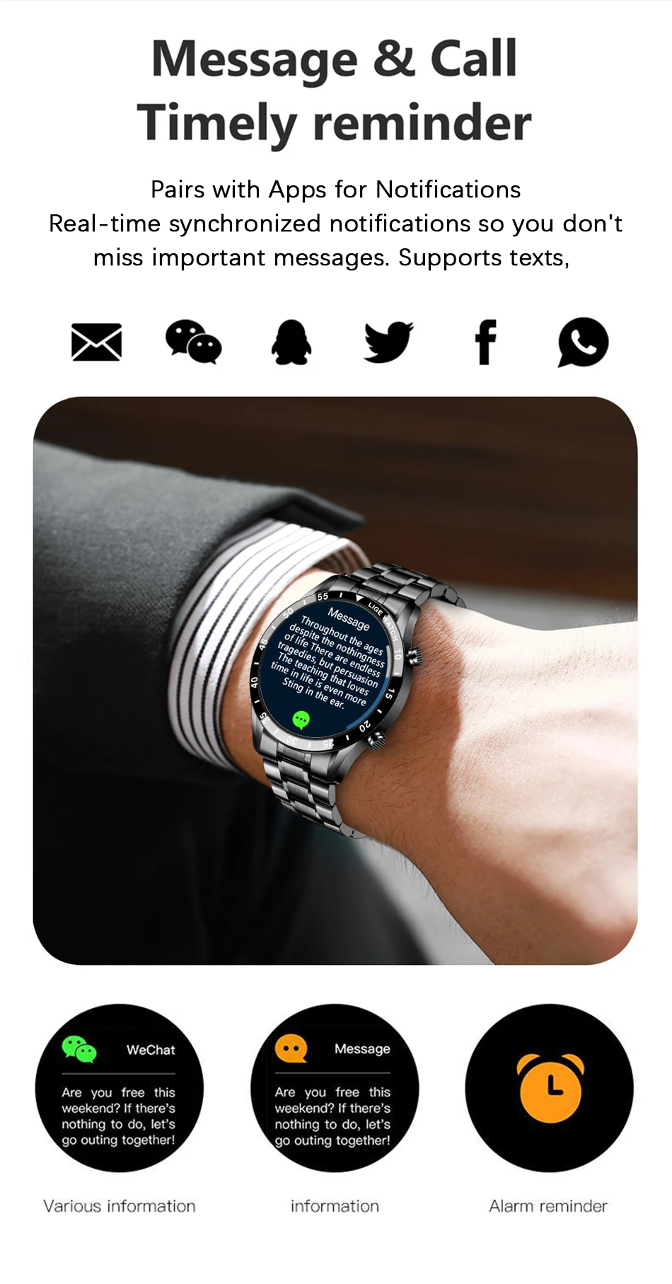 Смарт-часы LIGE мужские водонепроницаемые, сенсорный экран, Bluetooth, стальной ремешок