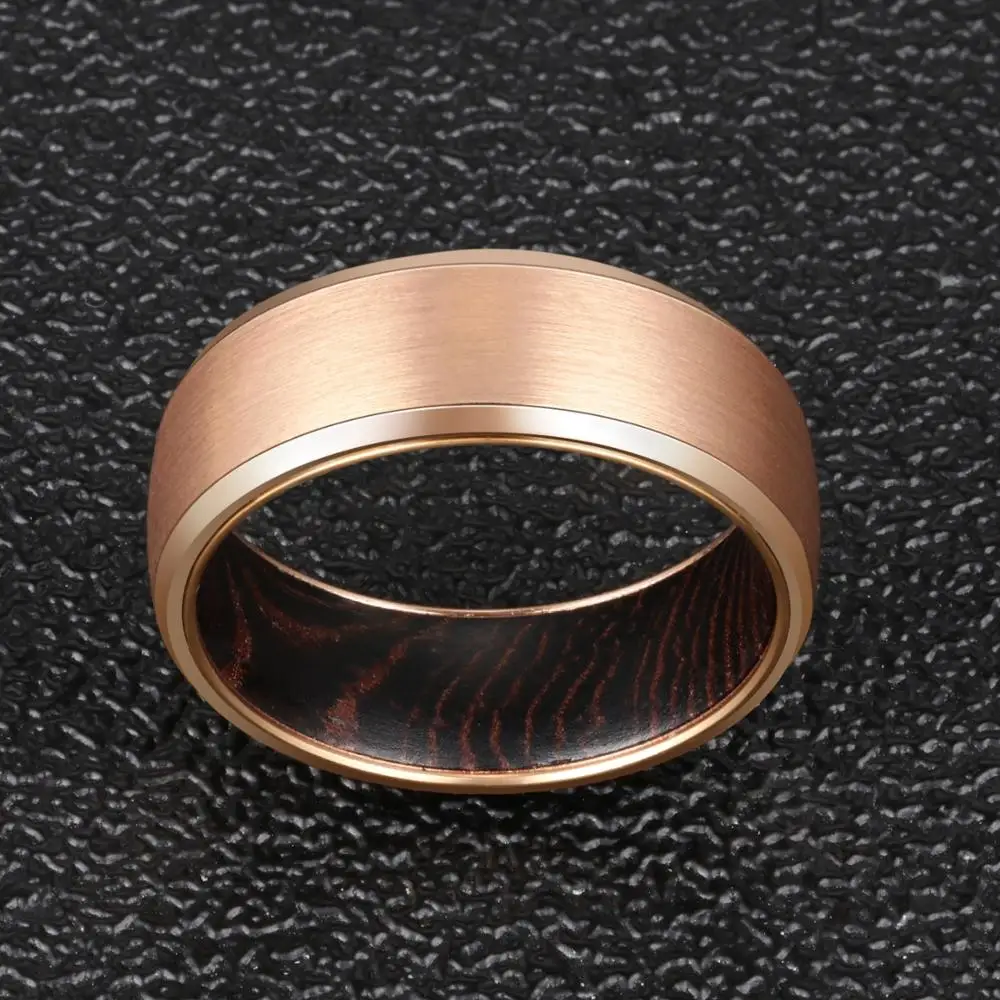 Кольца из 100% натурального дерева шириной 8 мм для мужчин, кольца из розового золота, карбида вольфрама, инкрустация, дерево венге, матовая отделка 6-13