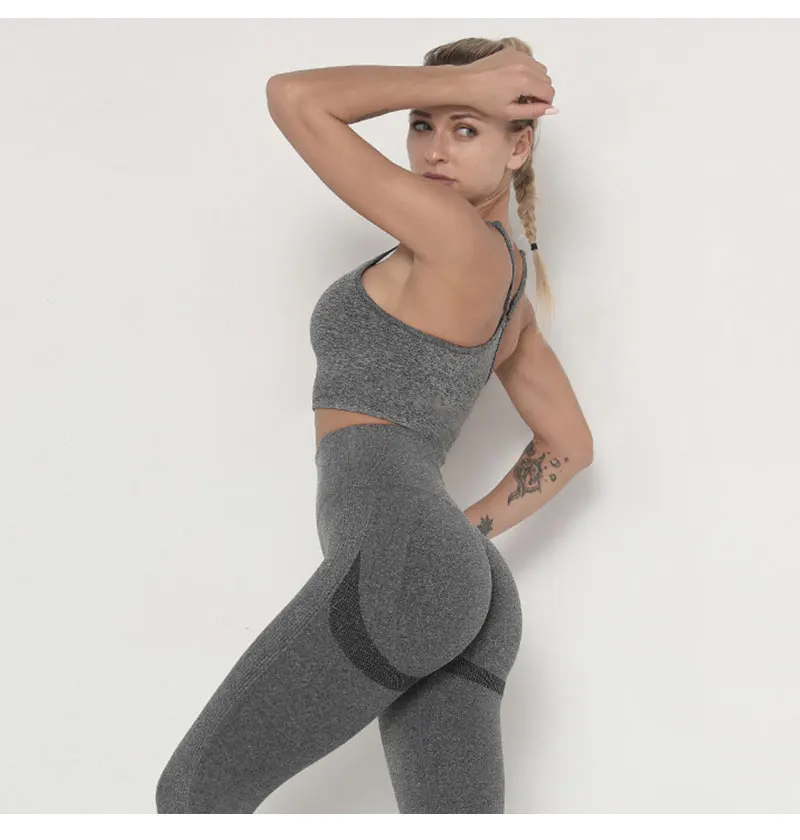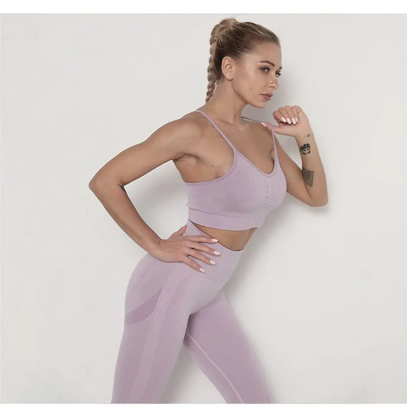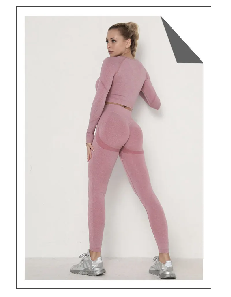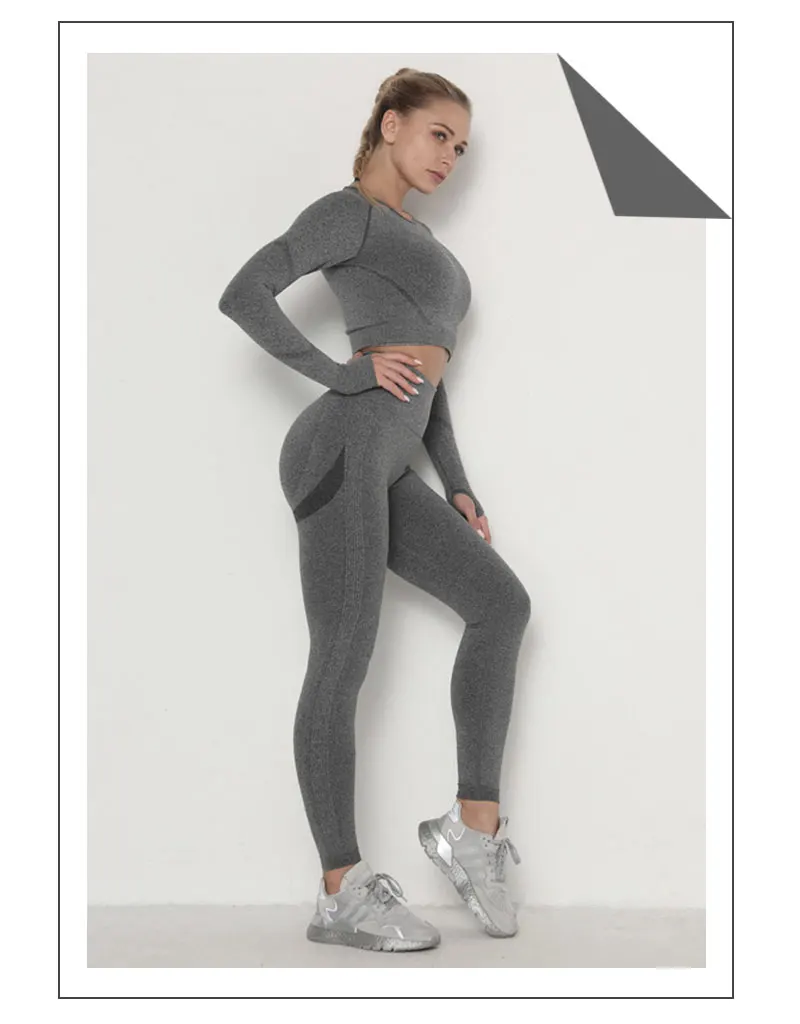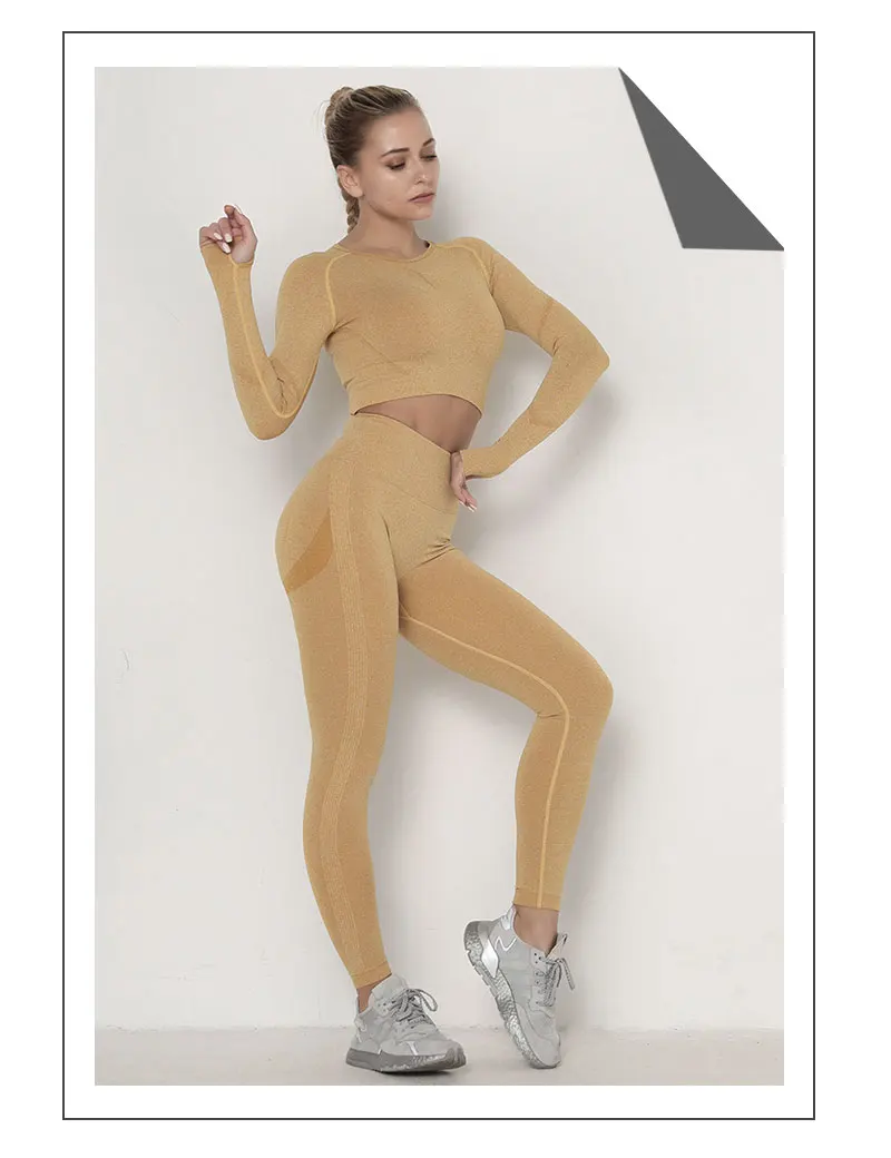 Комплект спортивный женский бесшовный для йоги, укороченный Топ с длинным рукавом и леггинсы с высокой талией и спортивный бюстгальтер