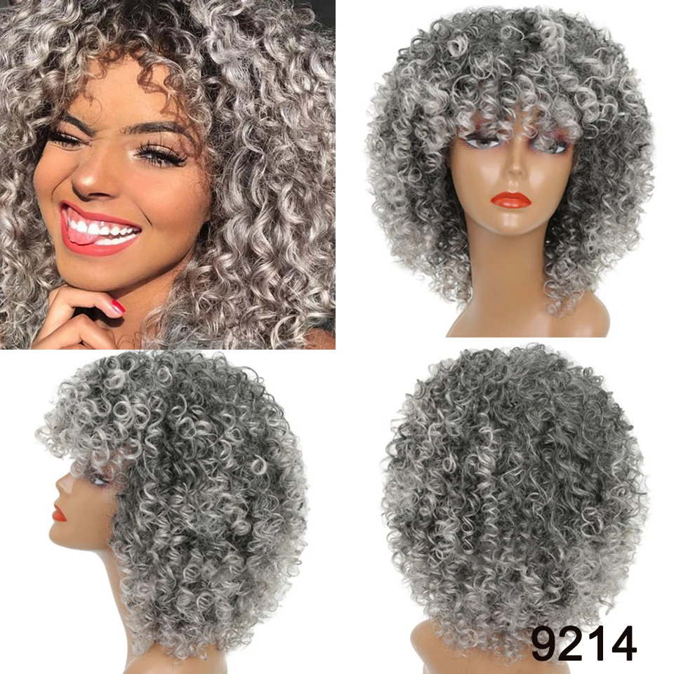 Синтетический парик 14 дюймов, кудрявые, натуральные, черные, серые...