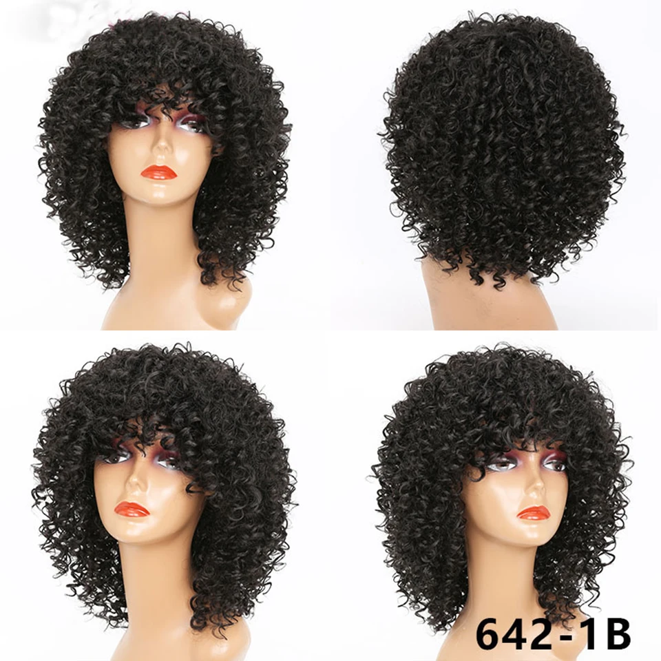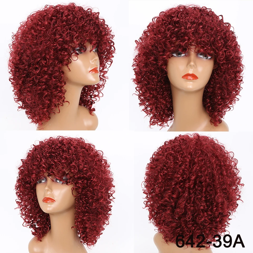 Синтетический парик Черные странные вьющиеся волосы парик смешанный черный и красный парик челки короткий синтетический парик Подходит для черных женщин