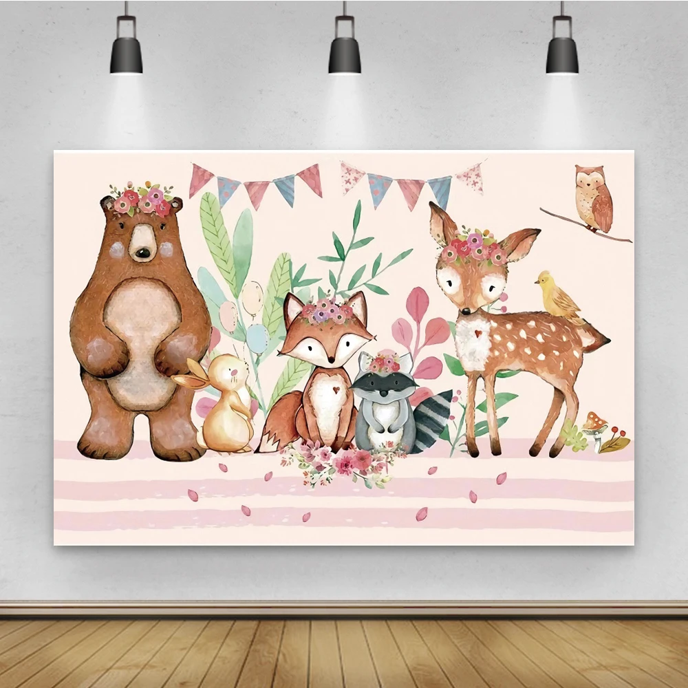 Фон для детских фотографий Laeacco с изображением животных флагов медведя на день рождения