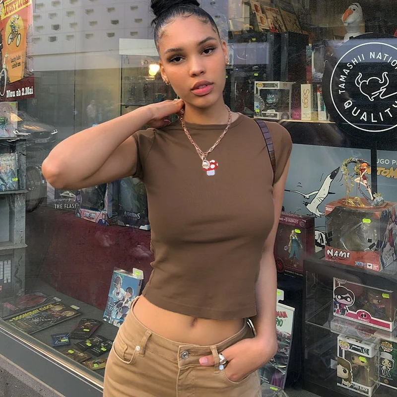 Y2K Новинка 2000s эстетичные большие коричневые топы с вышивкой в в...