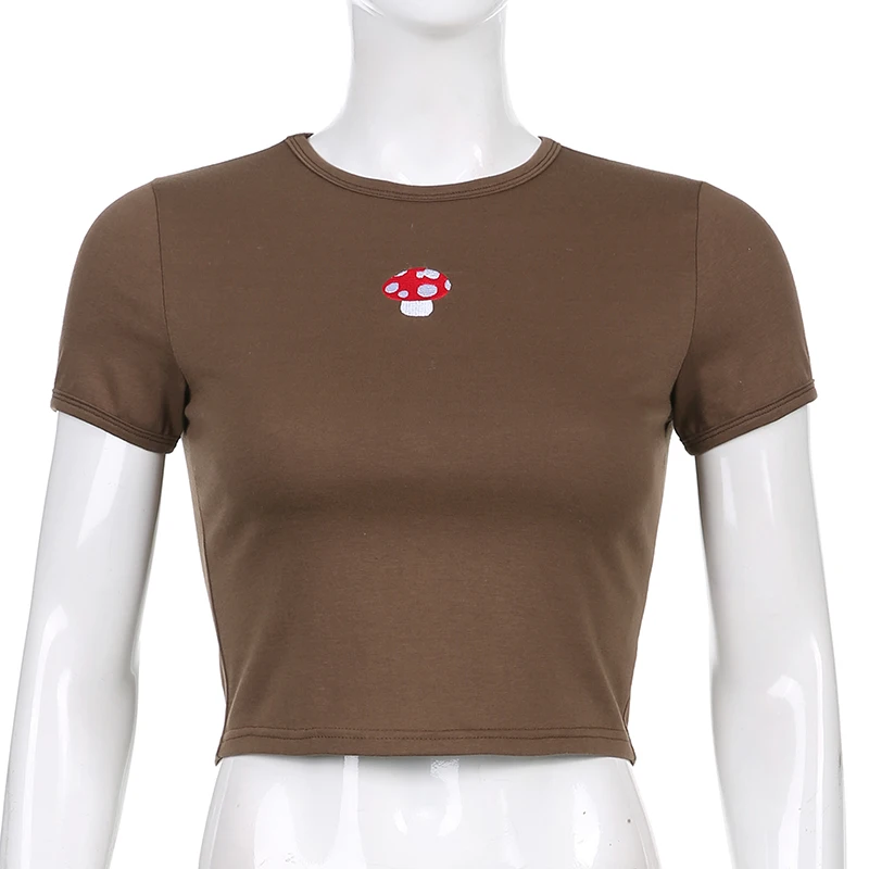 Женская уличная Толстовка Y2K, футболка с вышивкой в виде грибов, п...