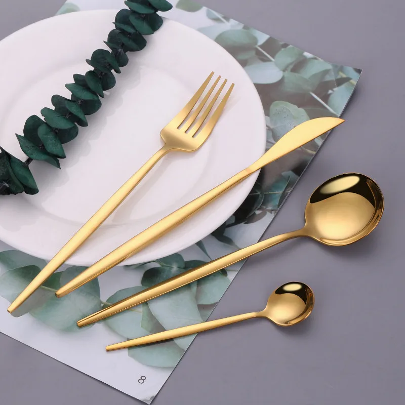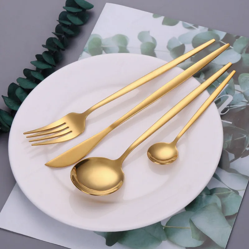 Набор золотых столовых приборов из нержавеющей стали, кухонный набор, столовая посуда, ложка, вилка, нож, столовый набор, столовые приборы, золотые столовые приборы