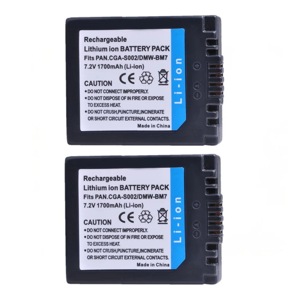 2x CGA-S002 DMW-BM7 CGA-S002A CGA-S002E Батарея для цифрового фотоаппарата Panasonic DMC-FZ1 DMC-FZ2 DMC-FZ3 DMC-FZ4 DMC-FZ5 DMC-FZ10 DMC-FZ15 DMC-FZ20