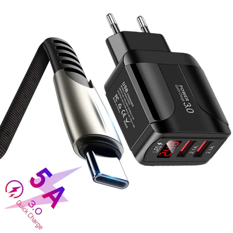 Быстрая зарядка 3,0, зарядное устройство USB со светодиодным диспле...