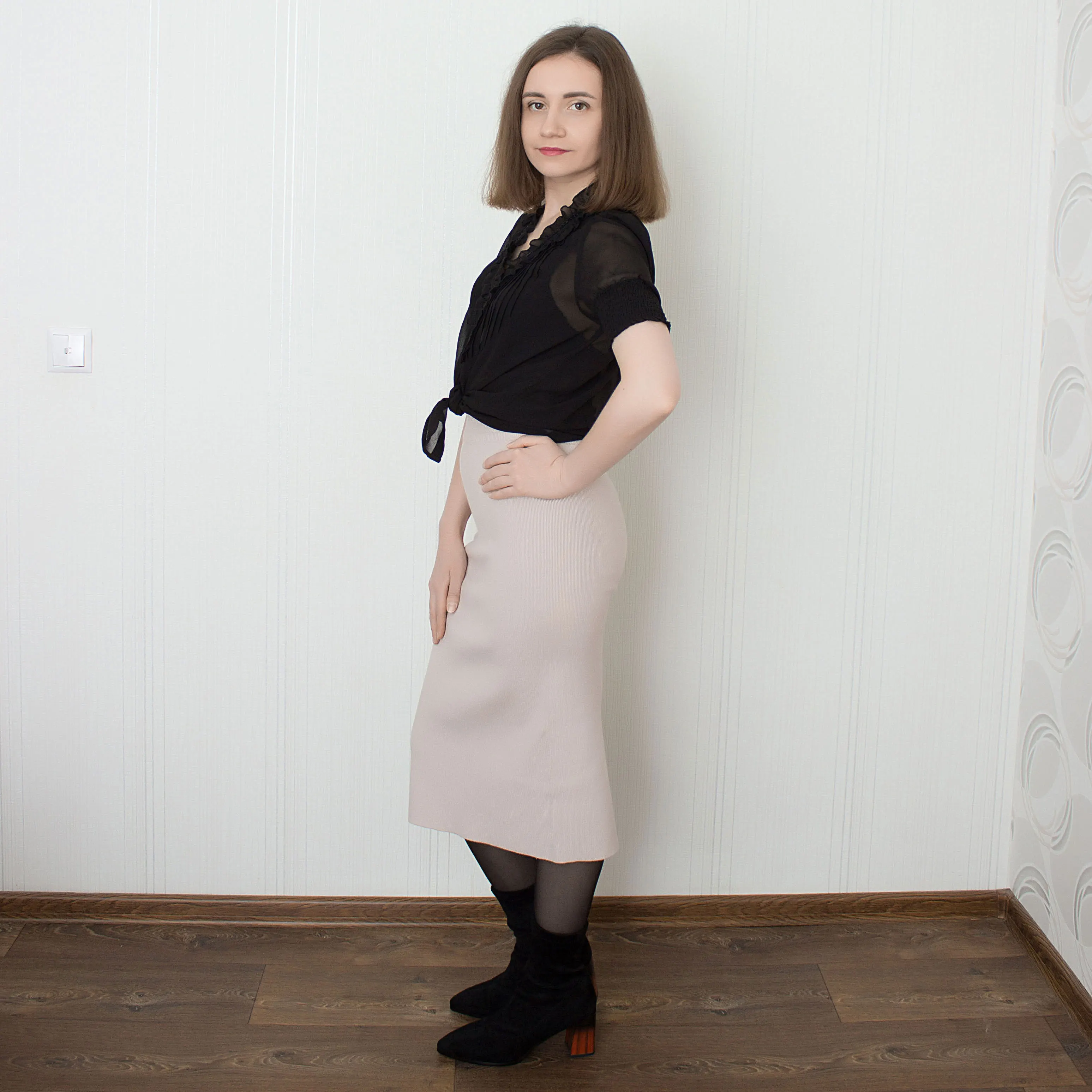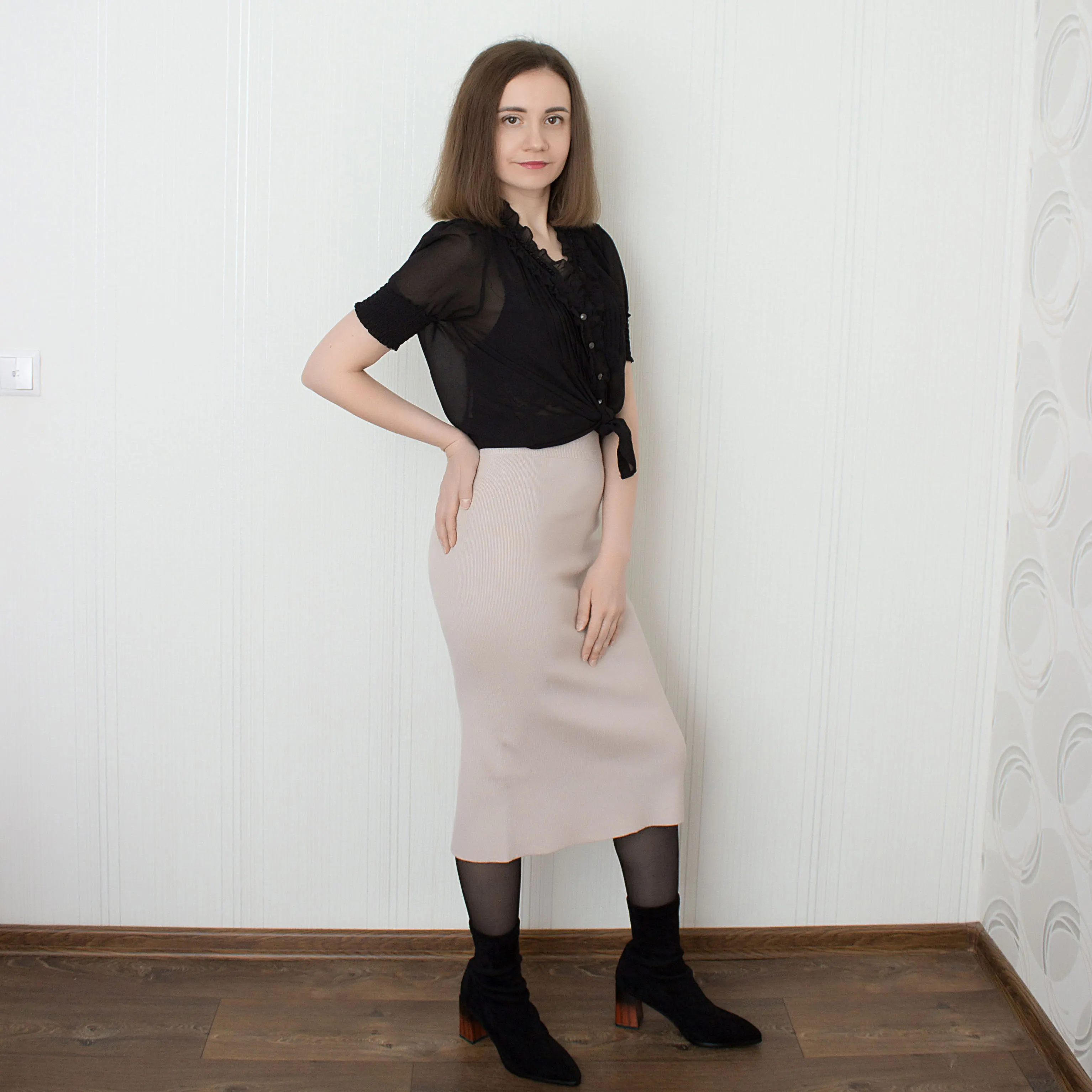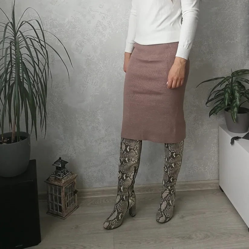 На объём бедер 92 см и 68 см я взяла размер S. Села замечательно просто - облегающе, а не просто висит. В талии тоже всё хорошо. Длина на мой 162 см ниже колена.Материал мягкий трикотаж. Ткань хорошо тянется, поэтому объем бедер не указан в таблице продавца. Вязка машинная. Всё ровно и аккуратно. Форма - карандаш. Сзади есть разрез в пределах разумного.Пришла юбка в индивидуальном пакете. Присутствовала бирка. Доставка в Беларусь заняла чуть больше месяца. Трек отслеживался на всем пути.
