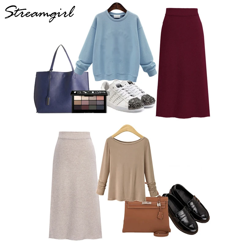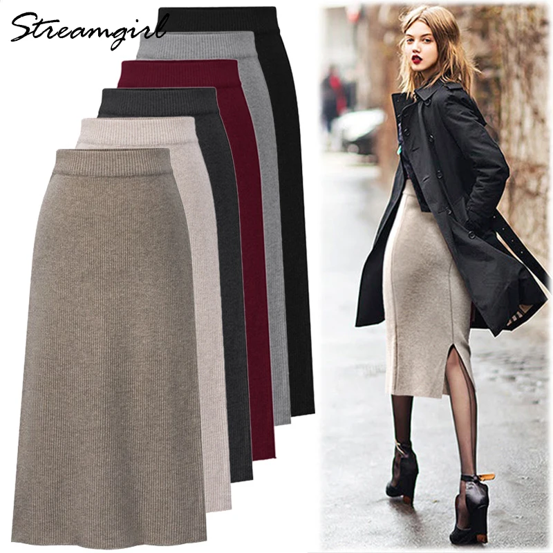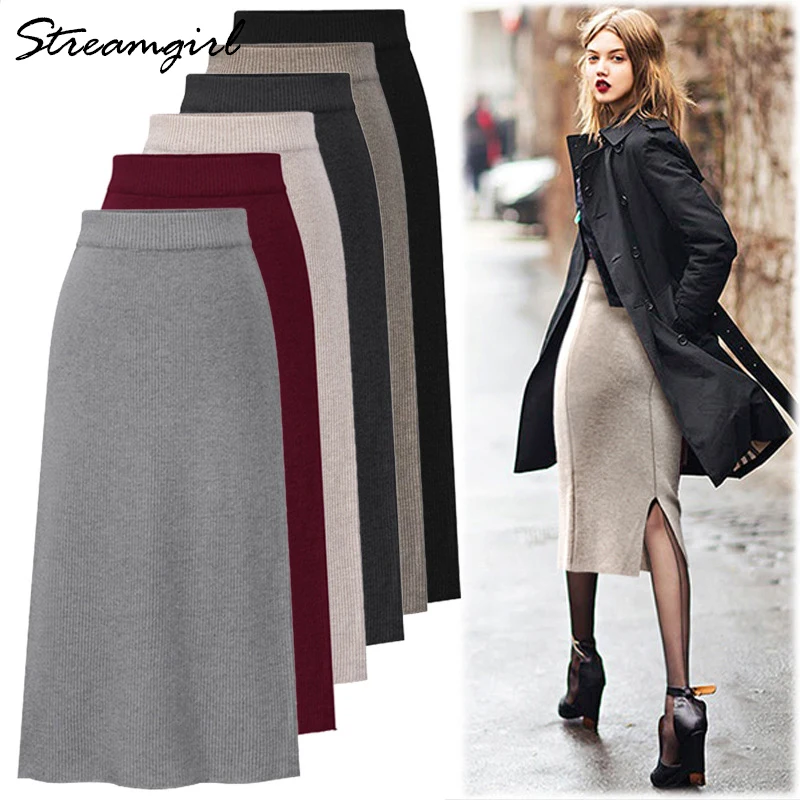 Трикотажная юбка Streamgirl с разрезом, винтажная размера плюс юбка с высокой талией для женщин, 4XL 5XL 6XL, прямая юбка для женщин на весну