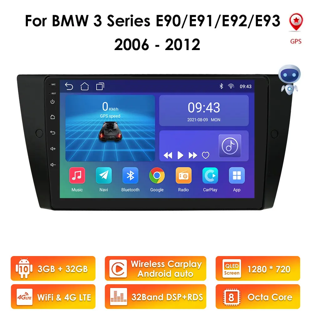 Автомобильный мультимедийный плеер 9 дюймов, Android 10,0, 4G, Wi-Fi, для BMW 3 серии E92, E93, E90, E91, GPS-навигация, автомобильное радио, стерео, видео, головное устройство