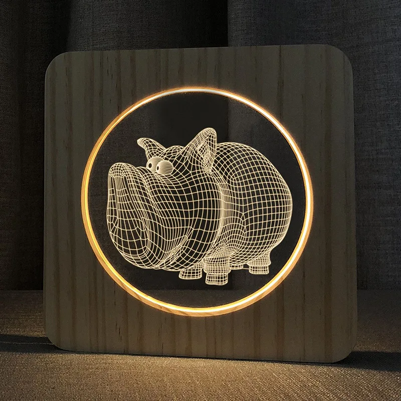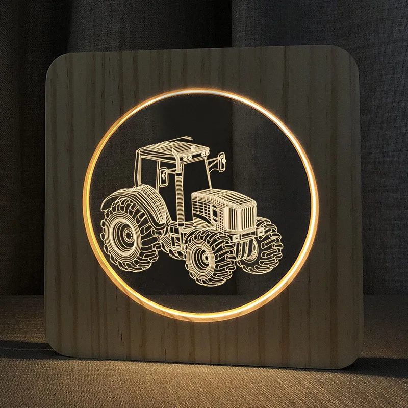 Acecorner 3D светодиодный трактор бульдог свинья животное акриловая деревянная USB Ночная лампа настосветильник лампа резьба лампа для украшения детской комнаты
