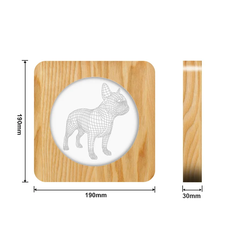 Название: креативный деревянный ночник 3D Материал: сосна Размер продукта: 190x190x30 мм Цвет продукта: теплый светильник Режим переключения: кнопка Характеристики Товара: 5 в 1 а 2,5 Вт Способ питания: USB-кабель (входит в комплект) Вес продукта: 0,55 кг Одна посылка: 24x20x3,8 см