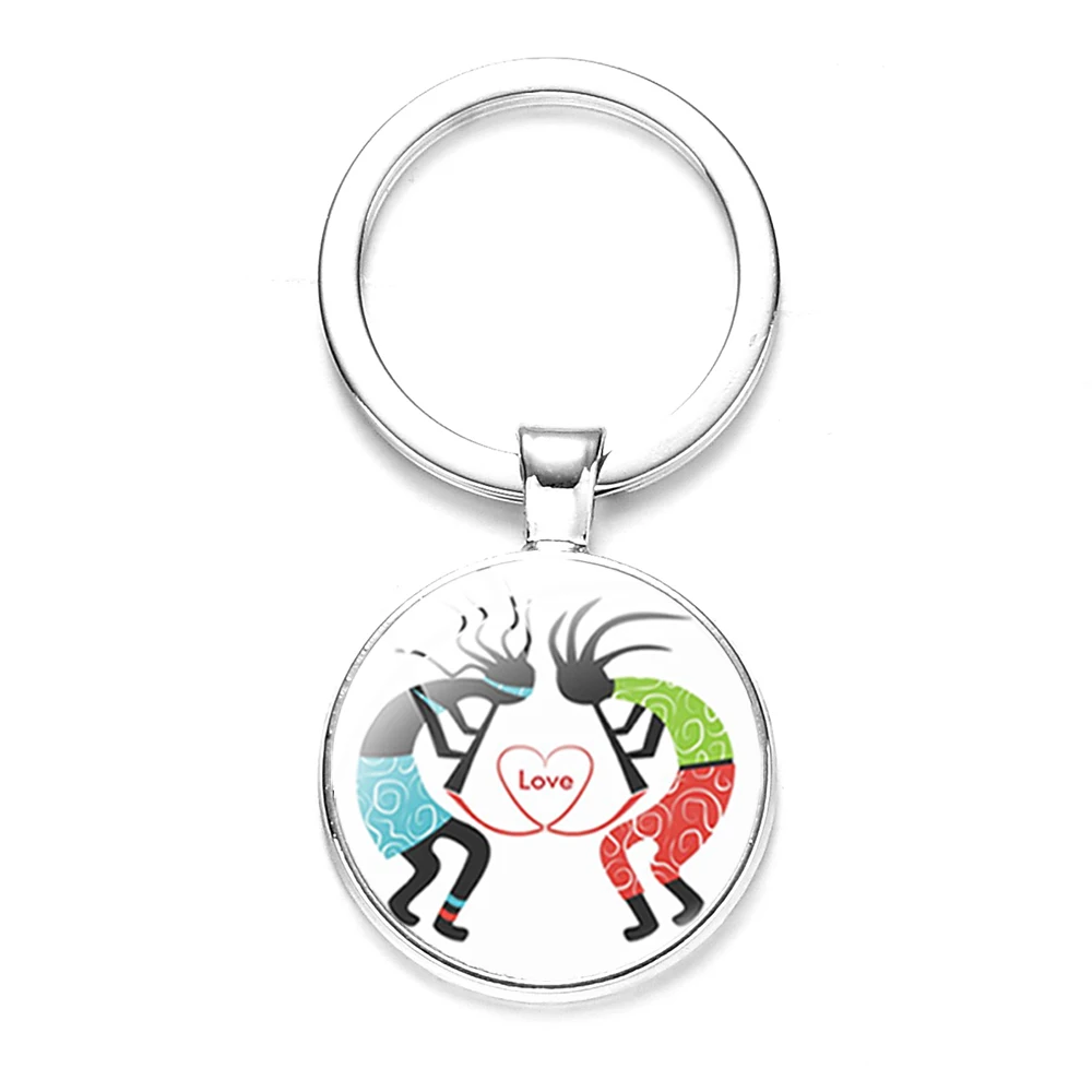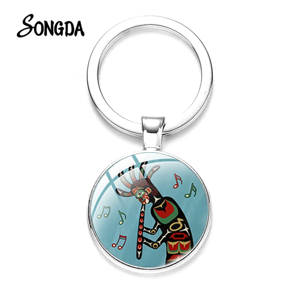 Африканский Kokopelli брелок с изображением танца сумка подвеска брелок Ретро Художественный принт кабошоны разрисованные изделия из стекла подвеска брелок автомобильные аксессуары Орнамент