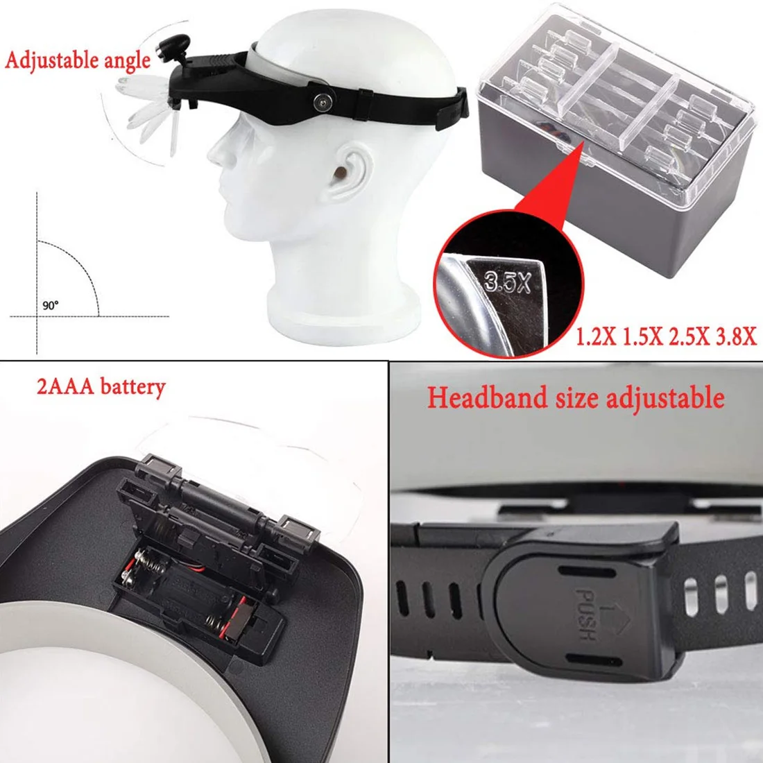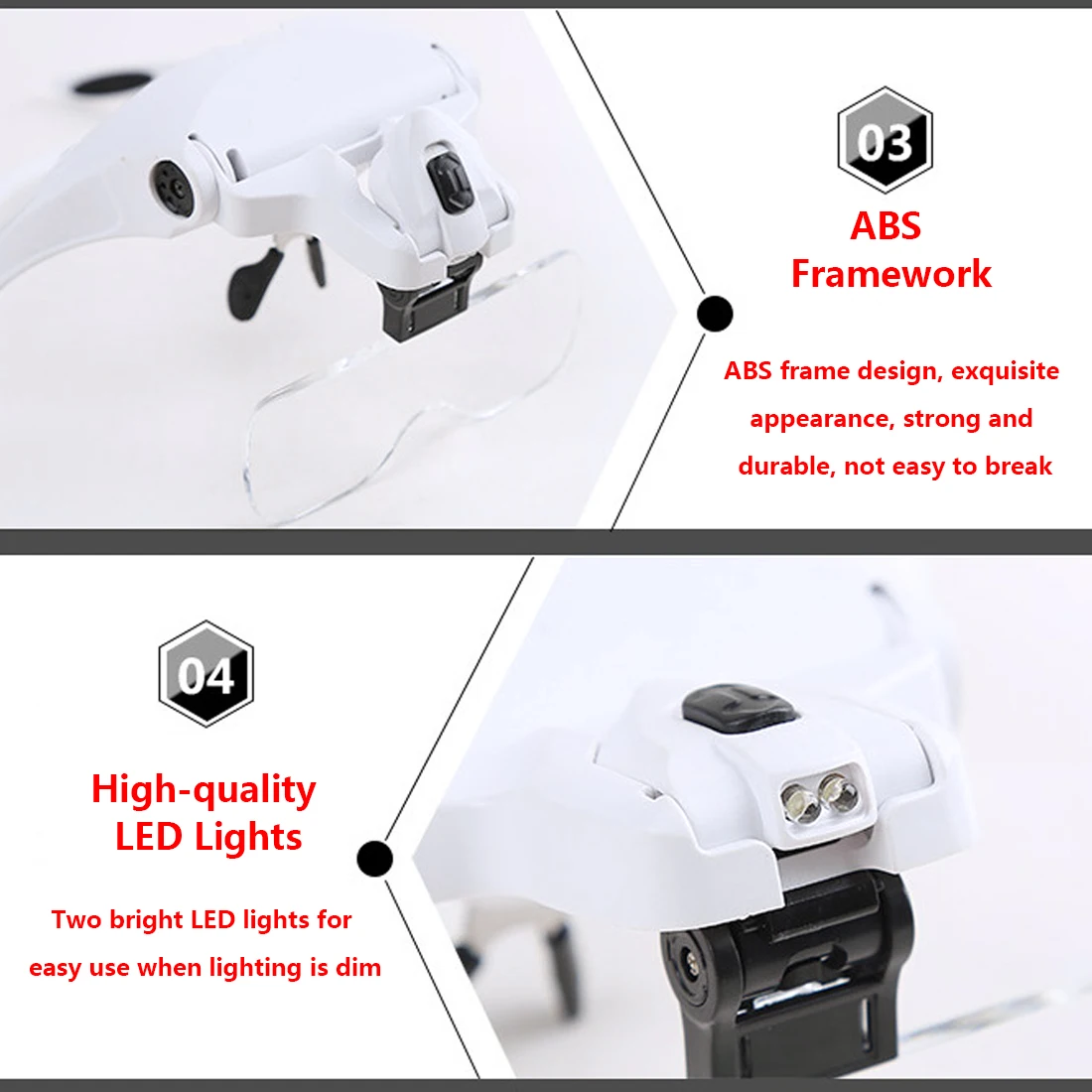 Линзы с 5ю категориями защиты Лупа на голову Лупа Стекло светодиодный светильник очки Регулируемый 1X 1.5X 2X 2.5X 3.5X увеличительное для чтения Стекло es