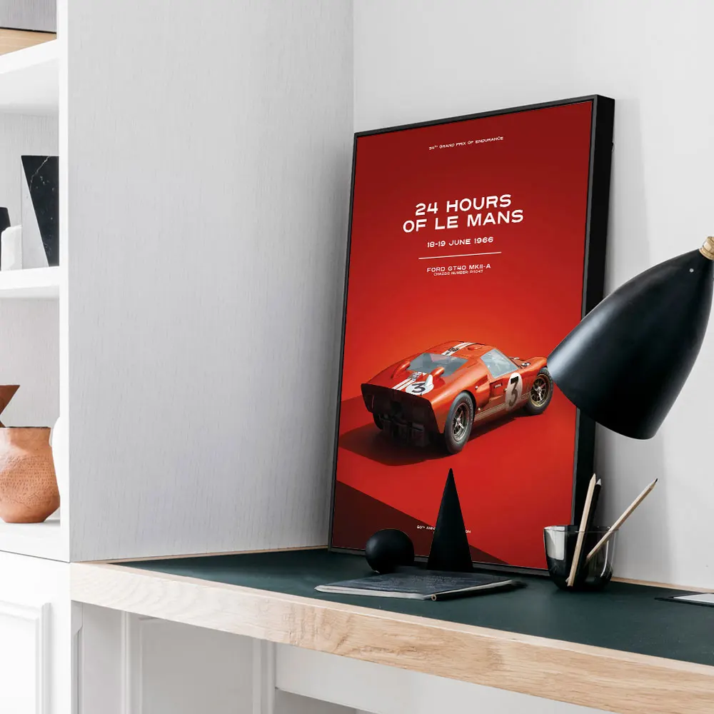 Постер на холсте Ford GT 40 24 часа Ле-Мана Июнь 1966, Настенная картина для гостиной, Декор для дома без рамки