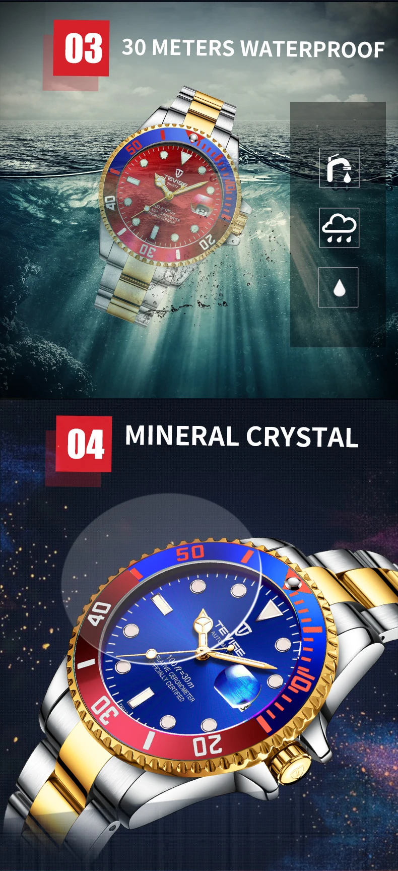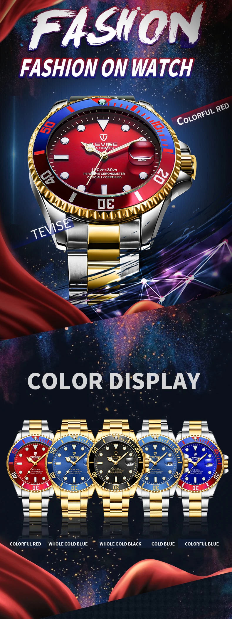 TEVISE Мужские кварцевые часы с водным привидением 316L сталь повседневные часы мужские водонепроницаемые 30 М часы Автоматические наручные часы reloj hombres