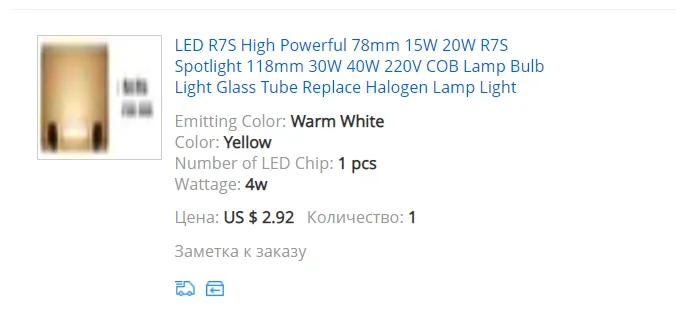 Страна: FR Emitting Color: Warm White Color: 220V Number of LED Chip: 4 pcs Wattage: 15W 78mm Доставка: Seller's Shipping Method 31.01.2021