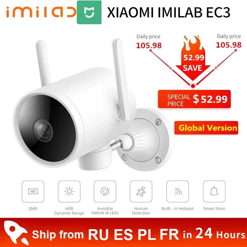 Глобальная версия IMILAB EC3 наружная камера Ip камера Wifi Mi домашняя камера безопасности 2K камера ночного видения Cctv камера наблюдения