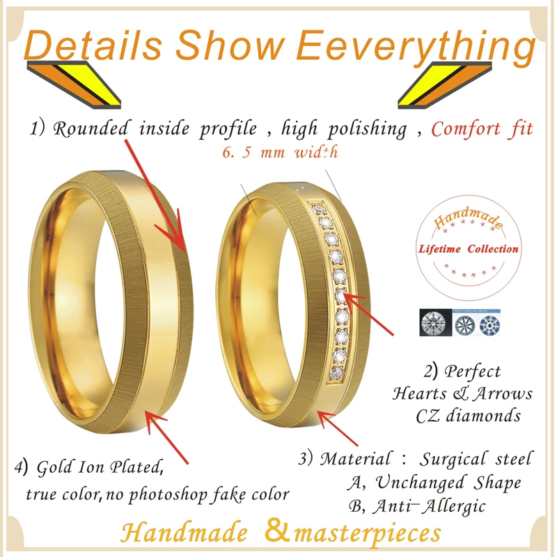 Цена за 2 кольца: пожалуйста, сначала выберите мужской размер кольца, затем вы можете выбрать женский размер кольца.