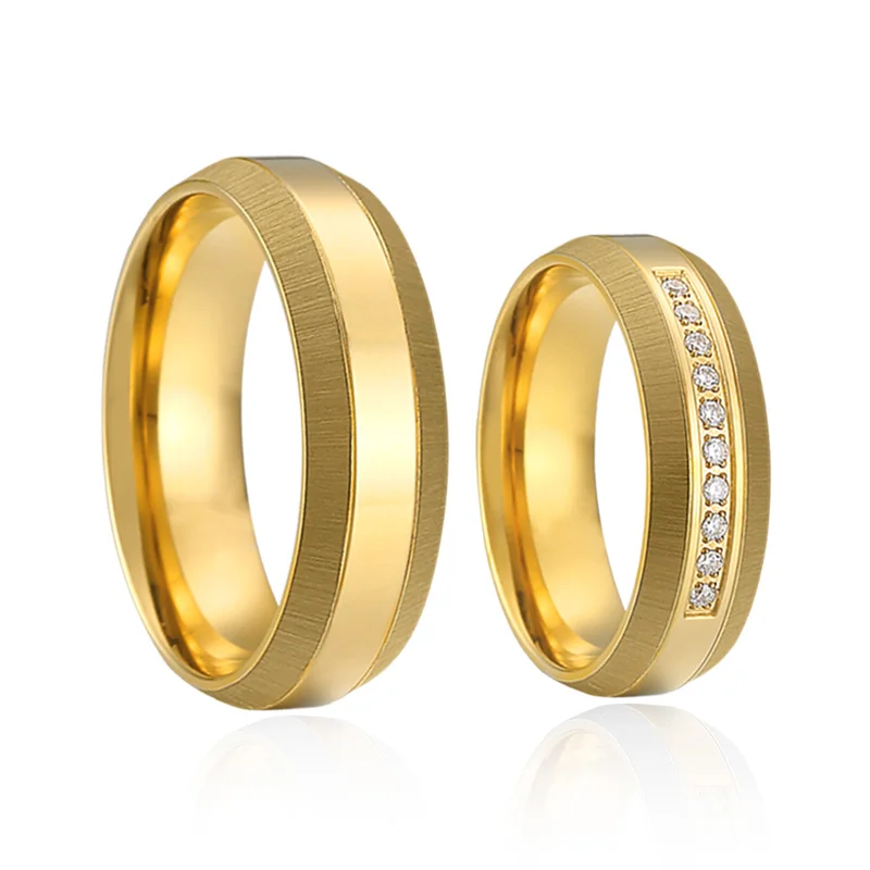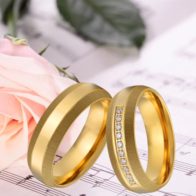 Золотые обручальные кольца для мужчин и женщин, кольца из нержавеющ...