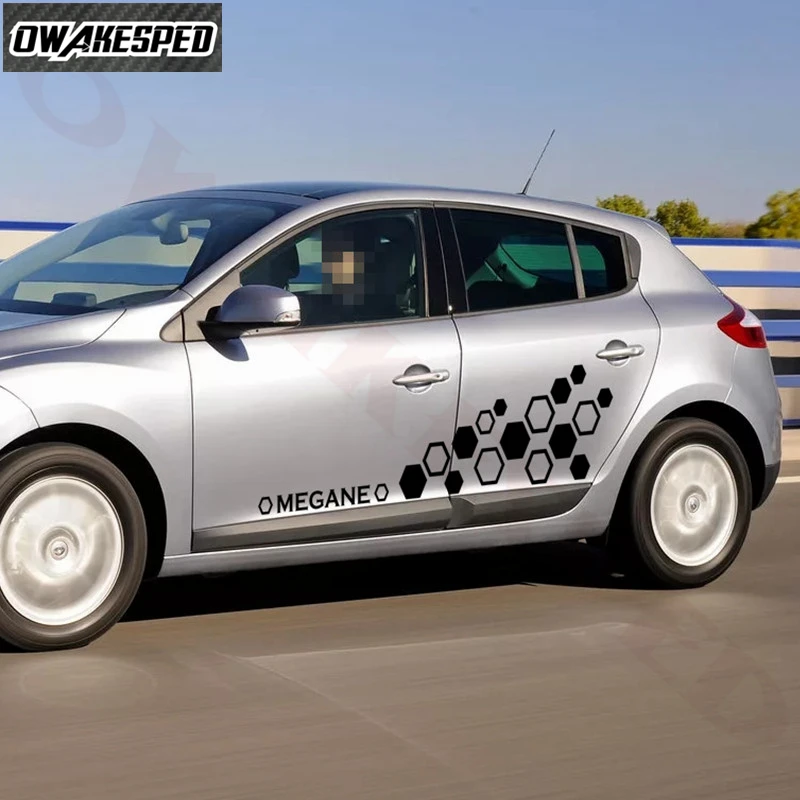 Двусторонние наклейки на автомобильные двери для Renault Megane 2, 3, 4, 2009-2020, гоночные, спортивные, шестигранные, виниловые наклейки в полоску