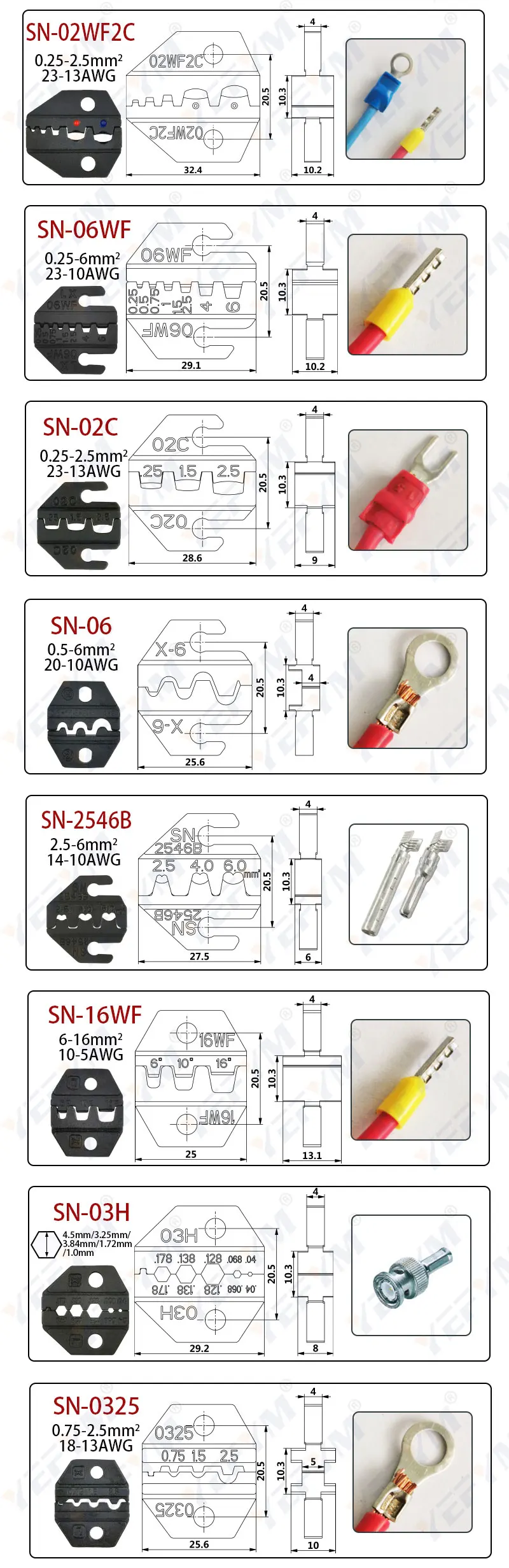 YEFYM SN-48BS обжимные плоскогубцы 0,25-1.5мм2 23-16AWG с tab 2,8 4...