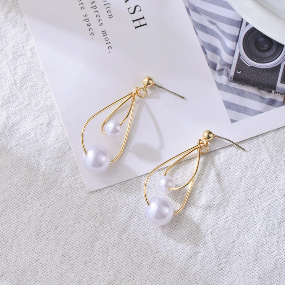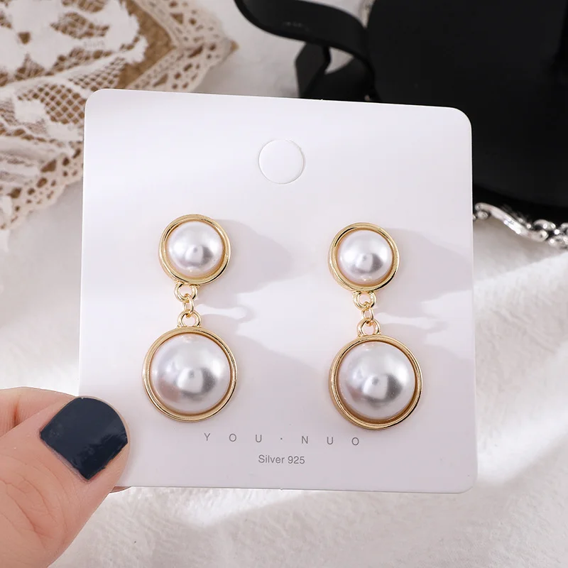 Серьги с белым жемчугом, корейские модные женские Висячие серьги, Э...