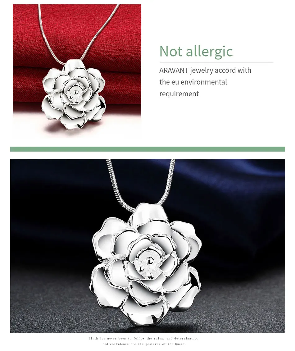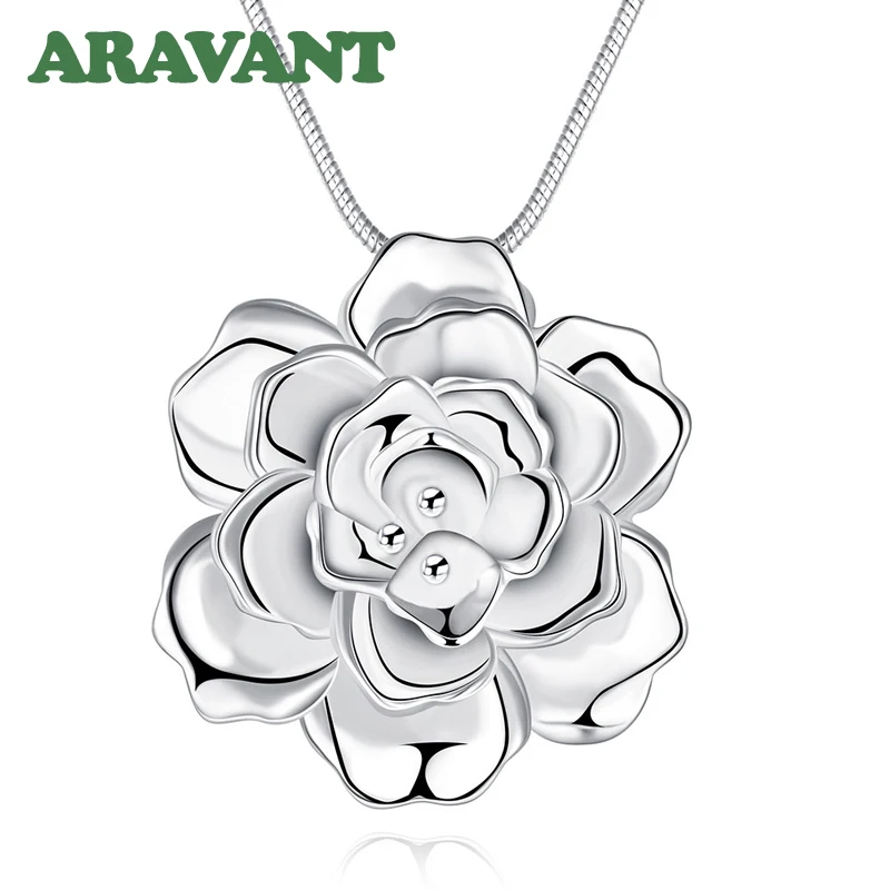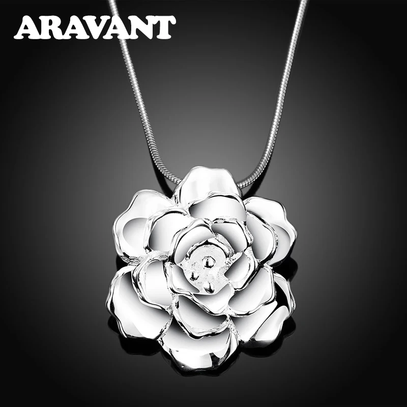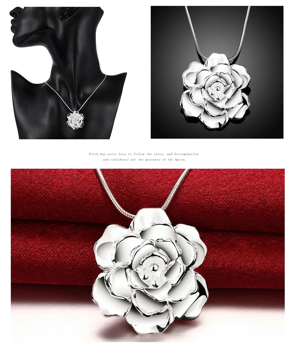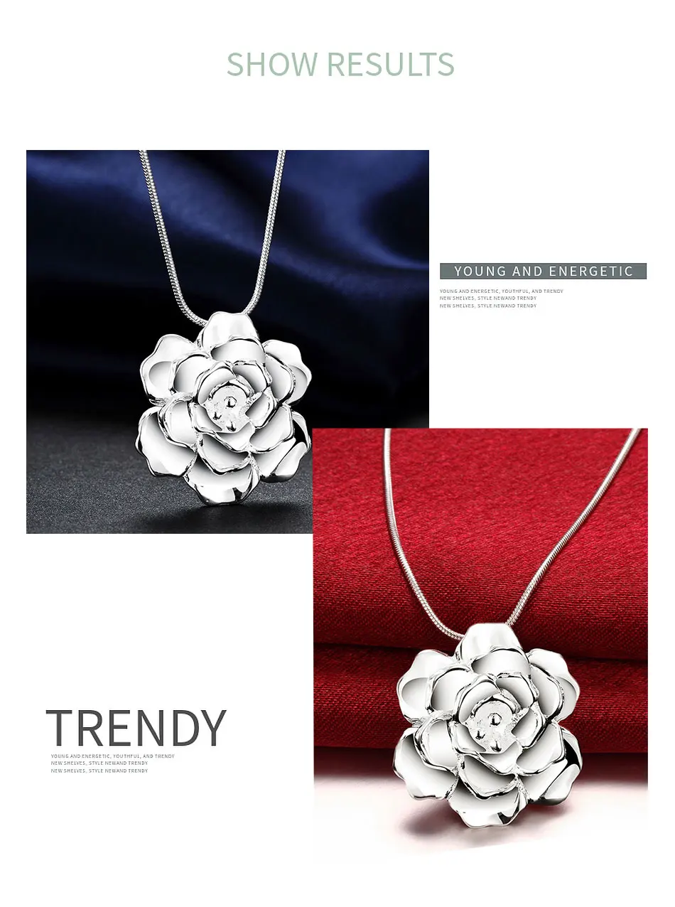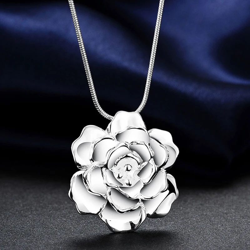 925 Серебряный цветок кулон ожерелье для женщин серебряная змея цепь ожерелья ювелирные изделия