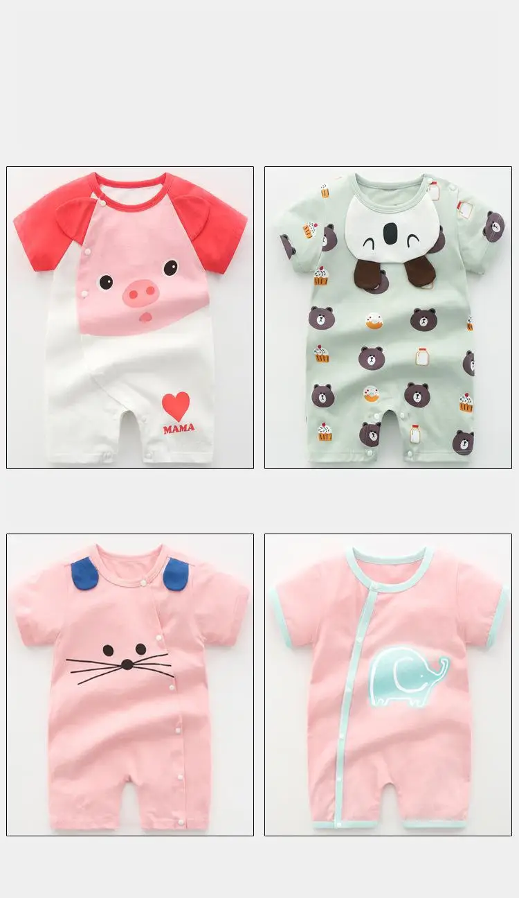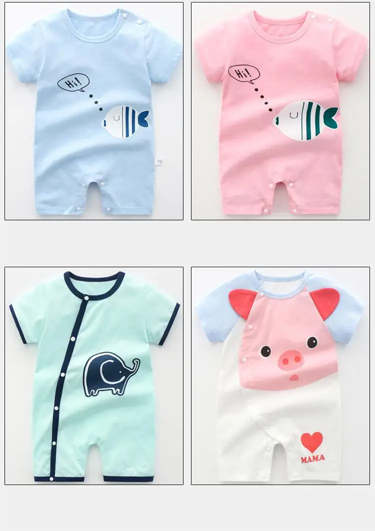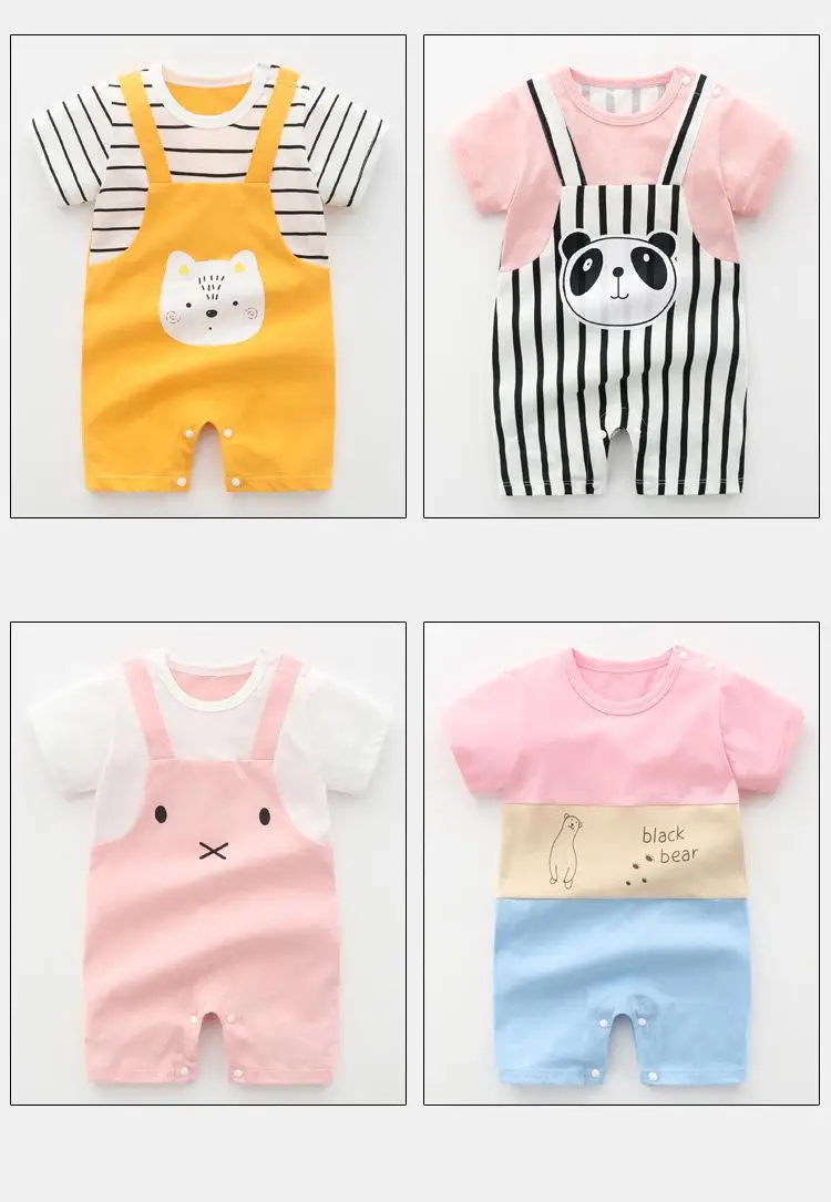 Комбинезон Детский комбинезон для мальчиков, для малышей, хлопок, короткий рукав, круглый вырез, мультяшный принт, Одежда для новорожденных, лето 2021