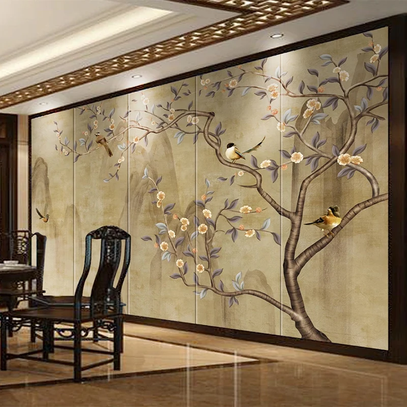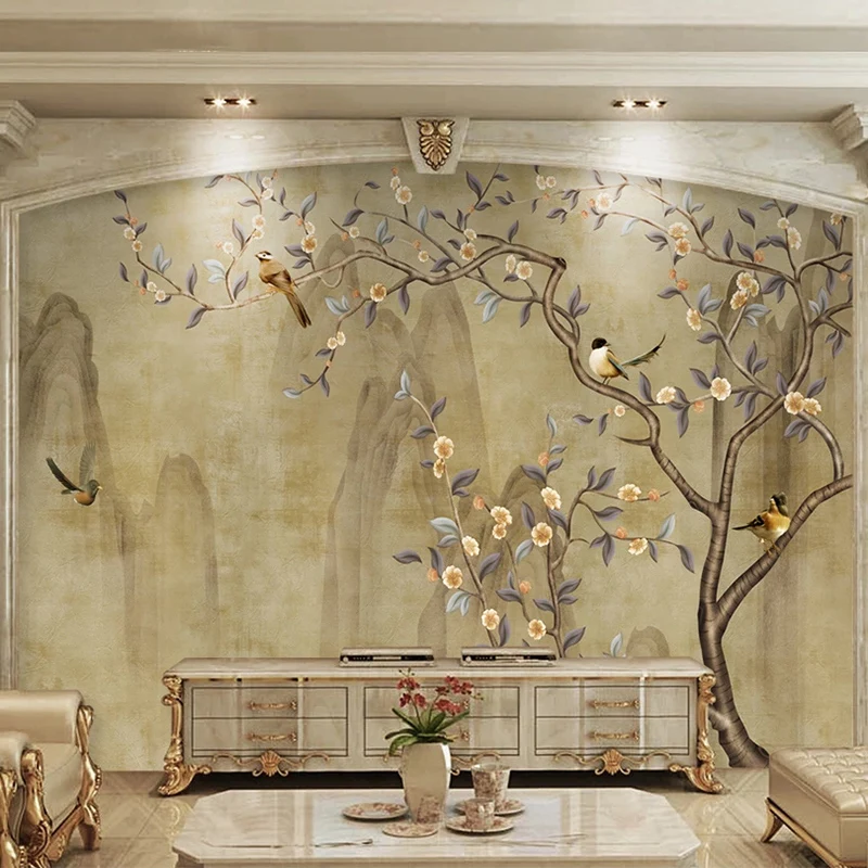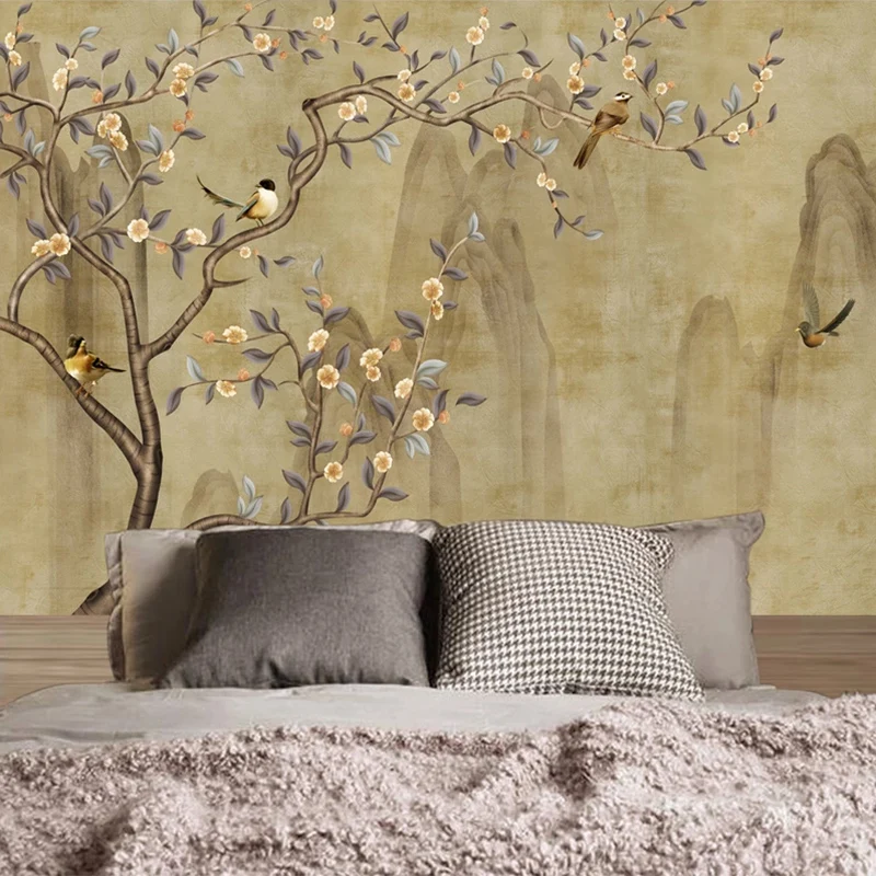 Настенная роспись 3D на заказ в китайском стиле в стиле ретро с ручной росписью цветами и птицами, фоновые обои для гостиной, кабинета