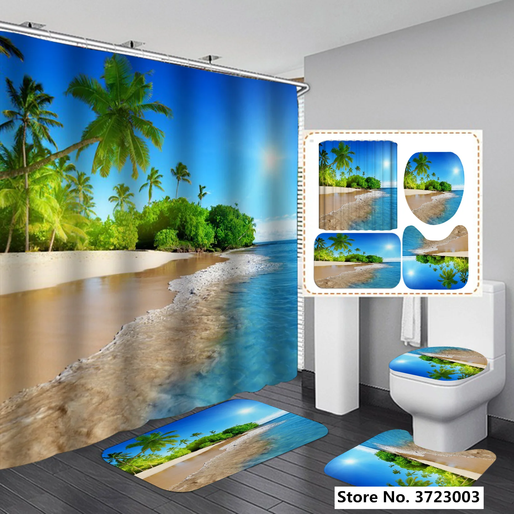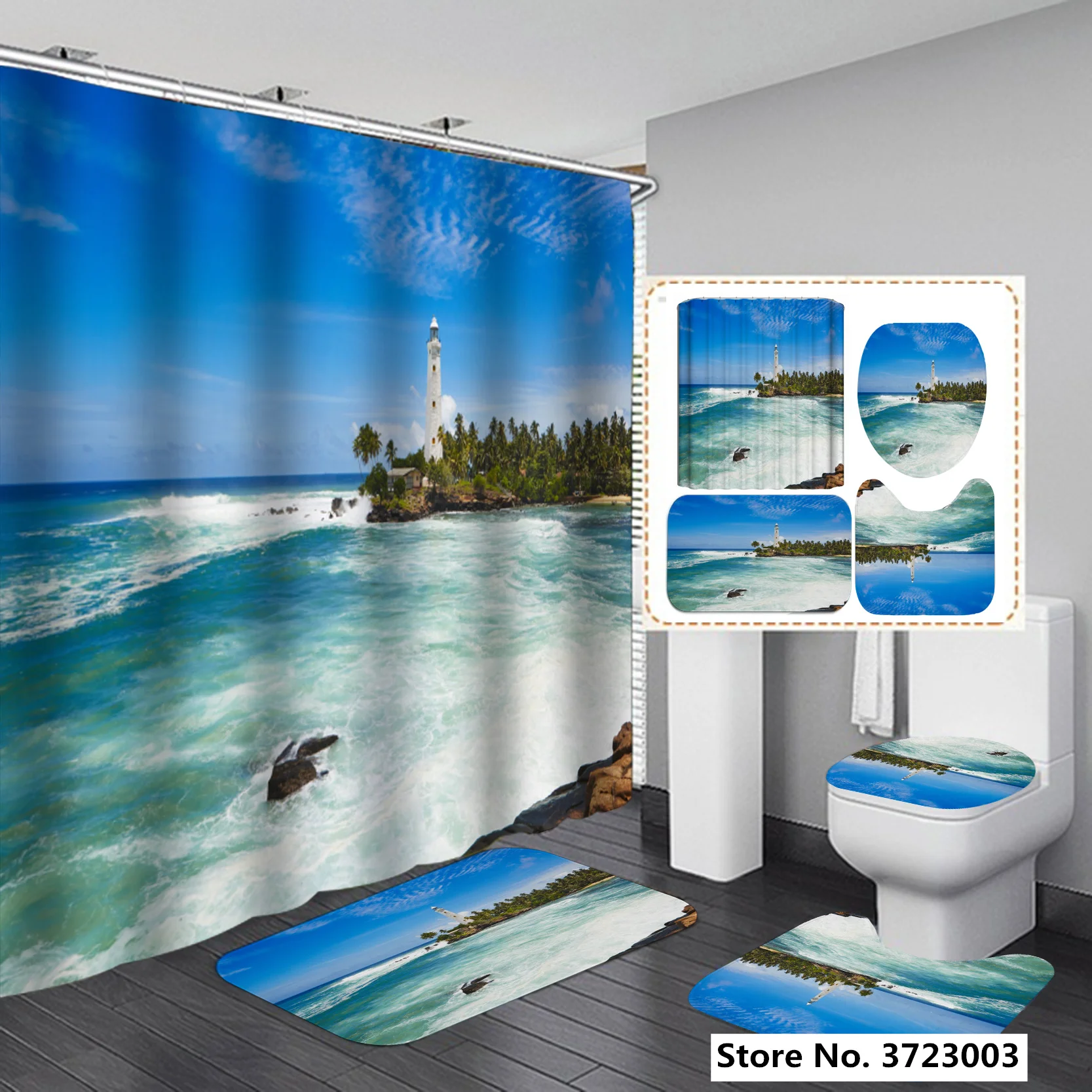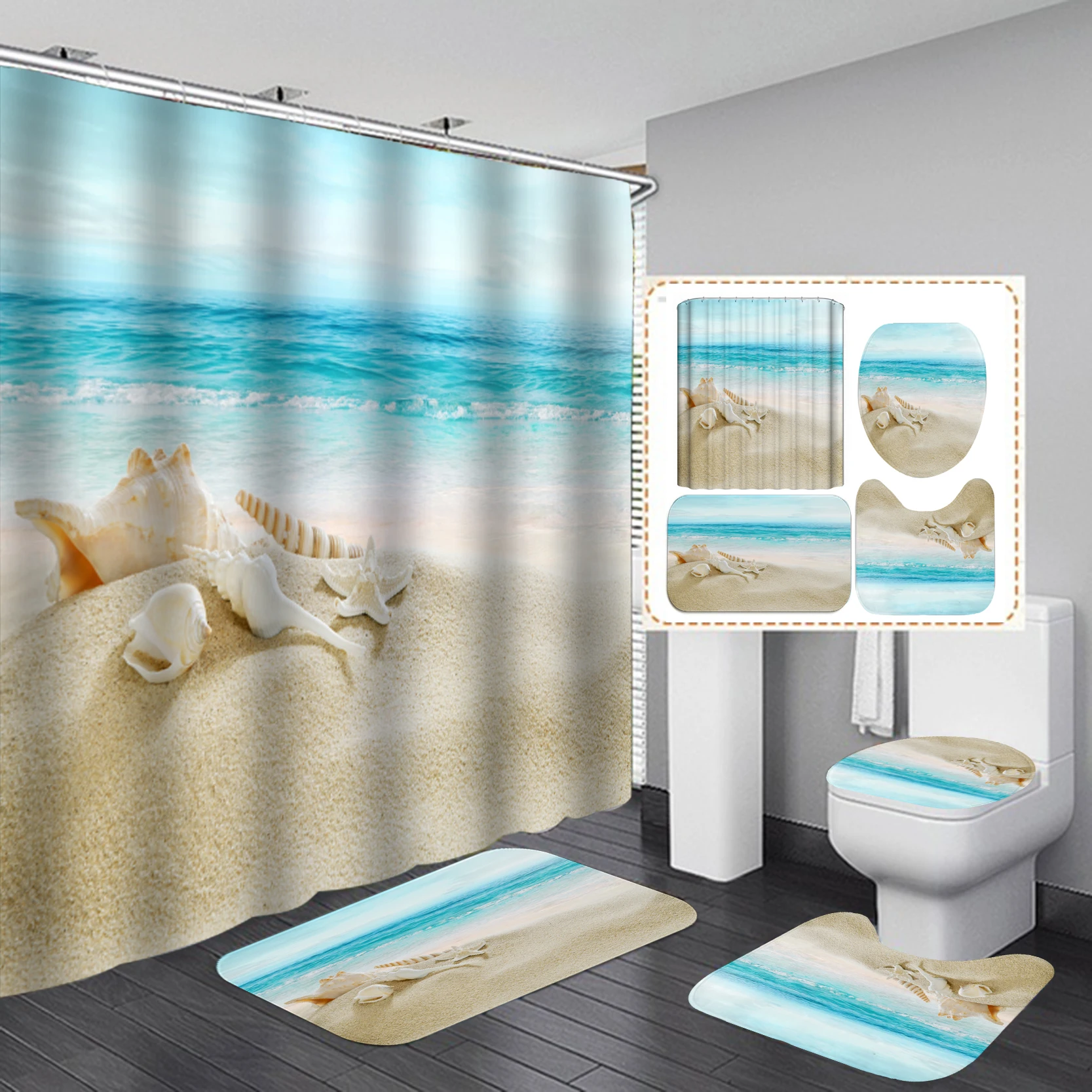 Тканевая занавеска для душа, цветная 3d-занавеска с принтом морских раковин, морских звезд, лодок, набор ковриков для туалета