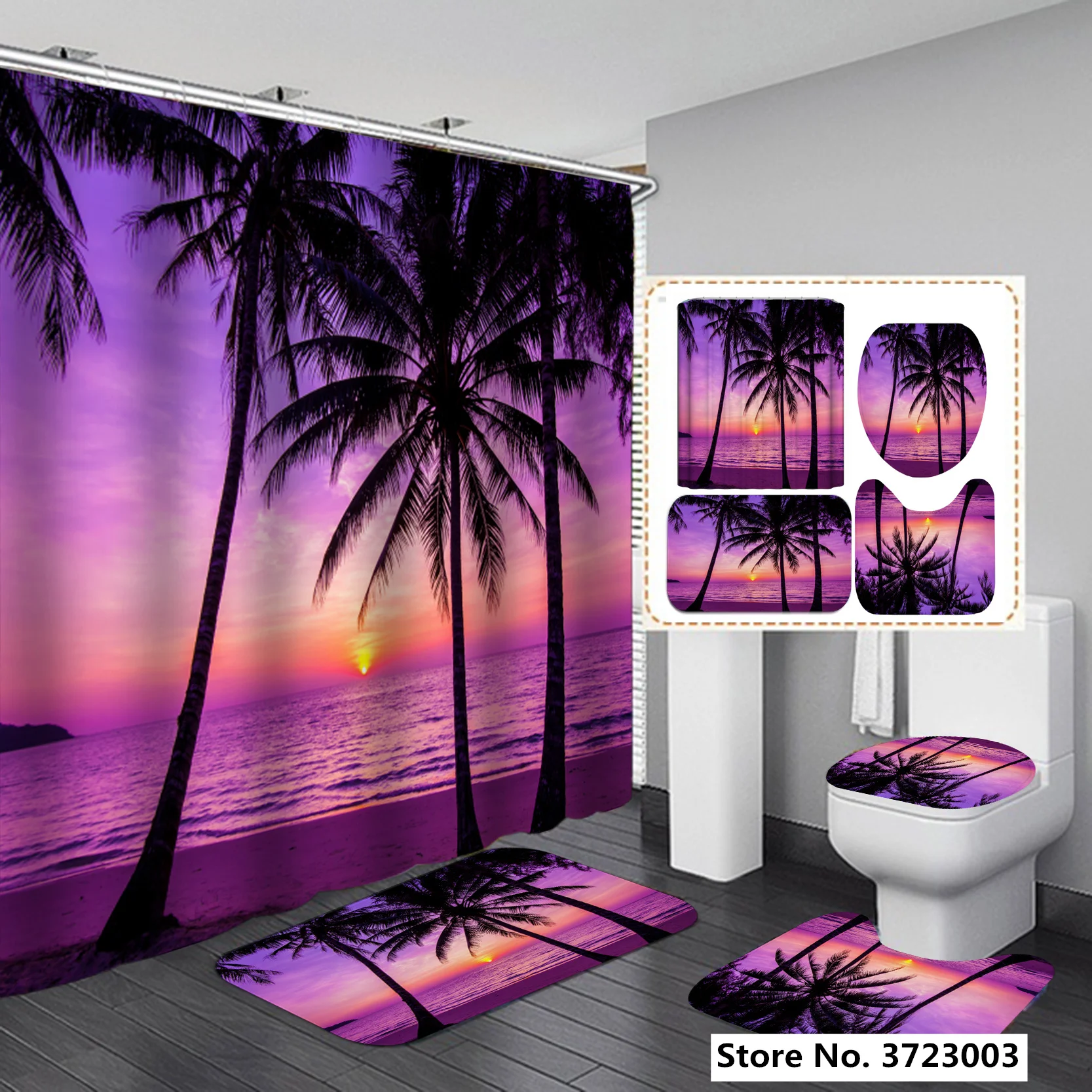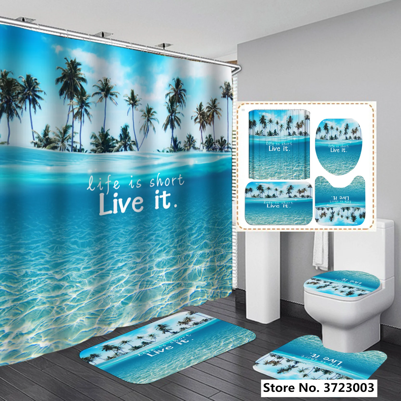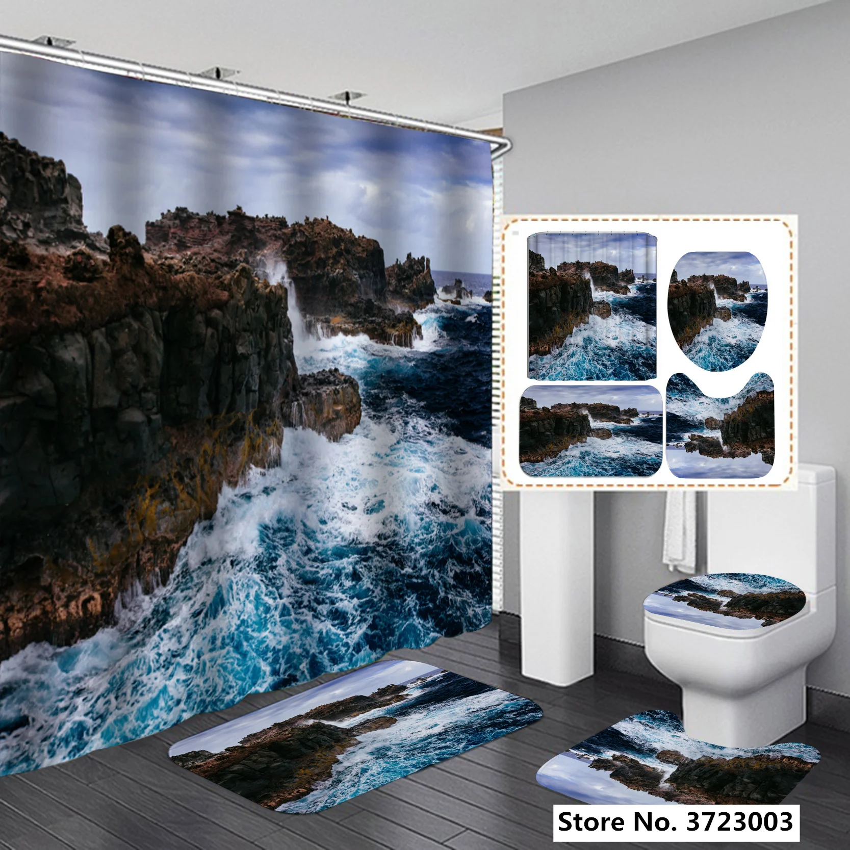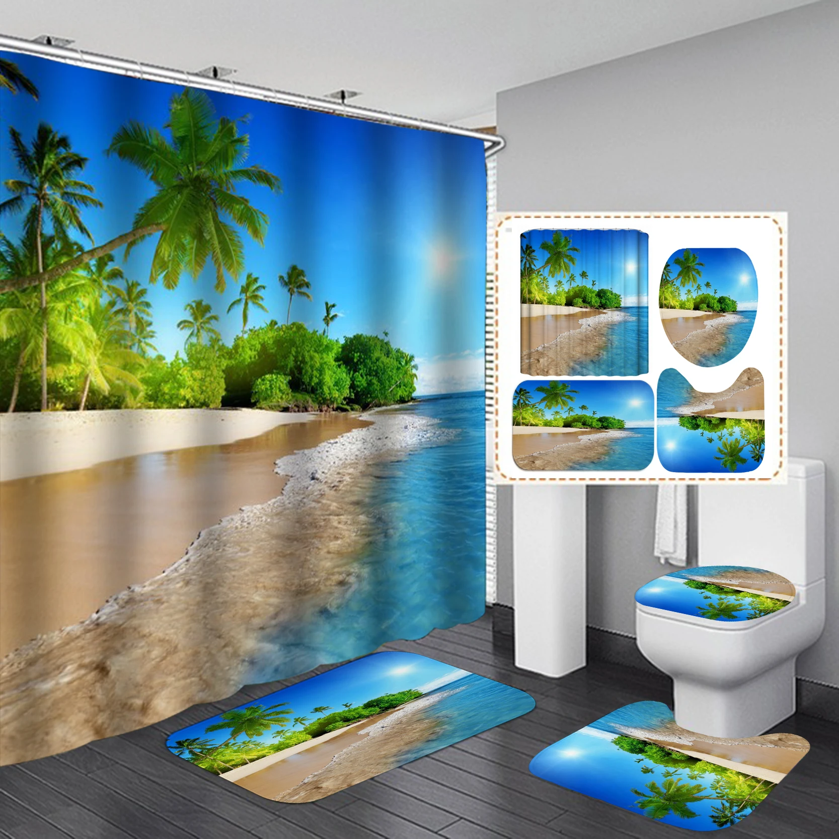 Тканевая занавеска для душа, цветная 3d-занавеска с принтом морских раковин, морских звезд, лодок, набор ковриков для туалета