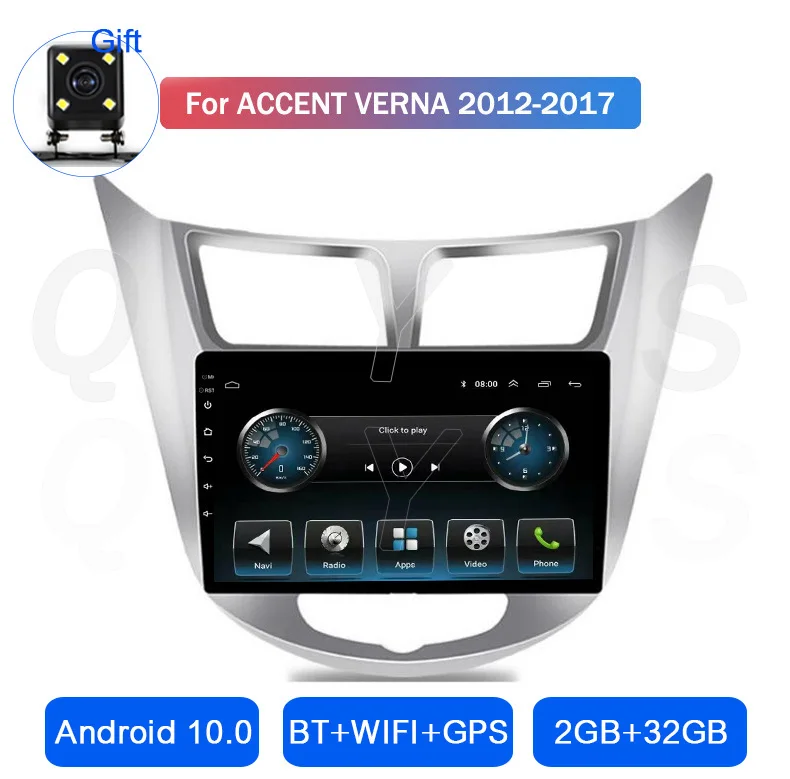 Автомагнитола на Android 10, 2 + 32 ГБ, GPS, для Hyundai Accent Verna 2012, 2013, 2014, 2015, 2016, 2017, HD, большой экран, GPS-навигация
