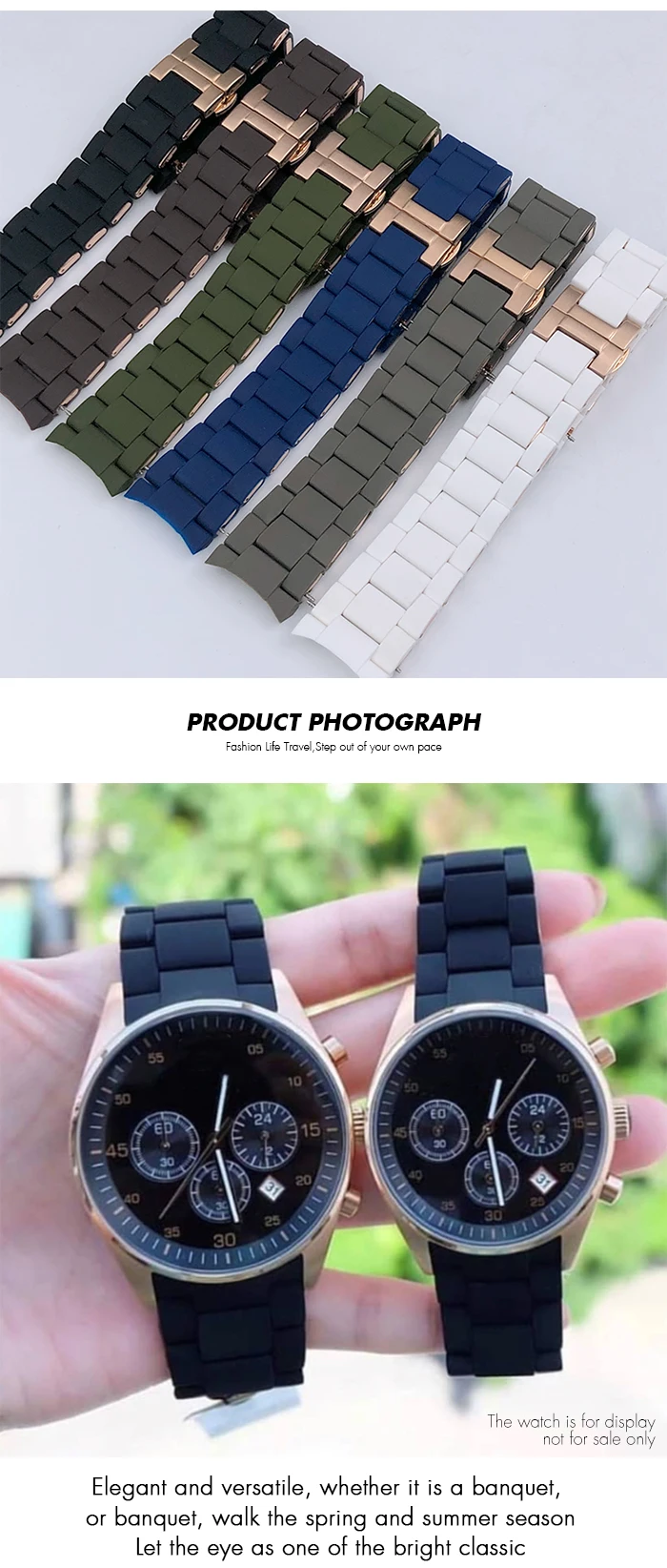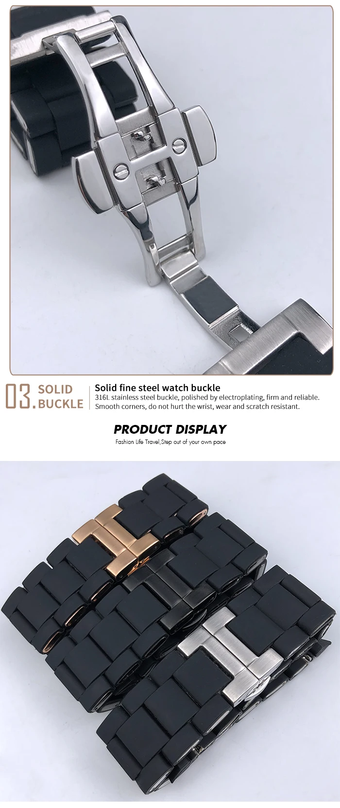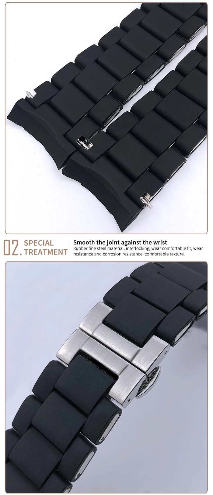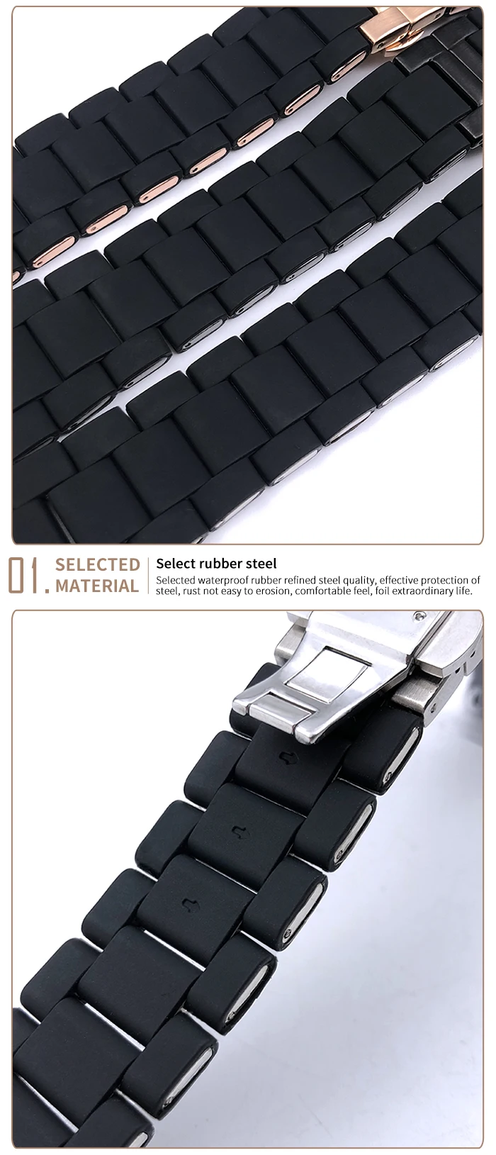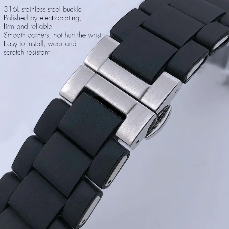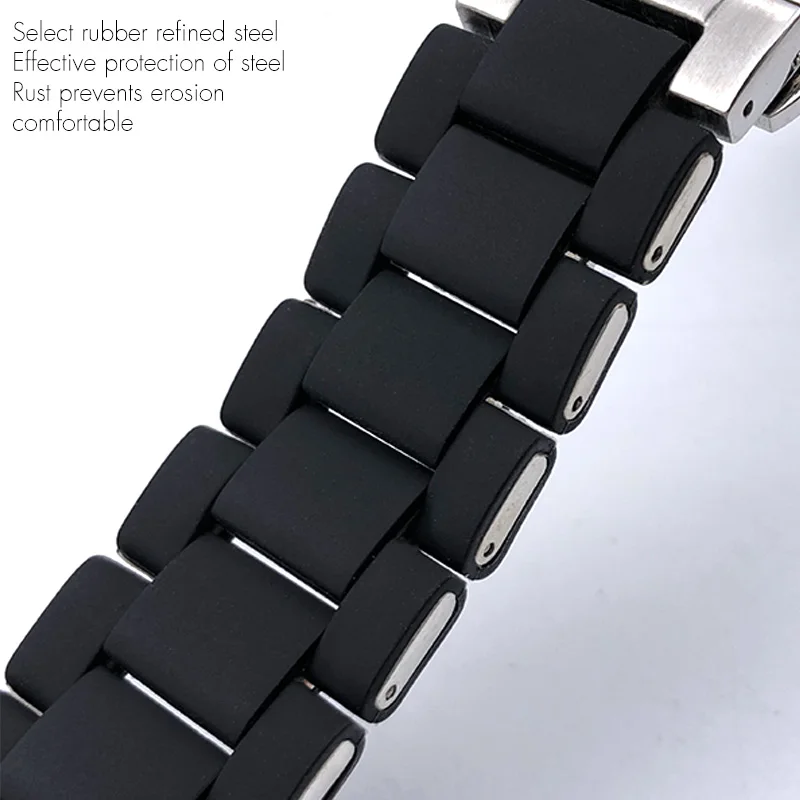 Ремешок резиновый силиконовый из нержавеющей стали для мужских часо...