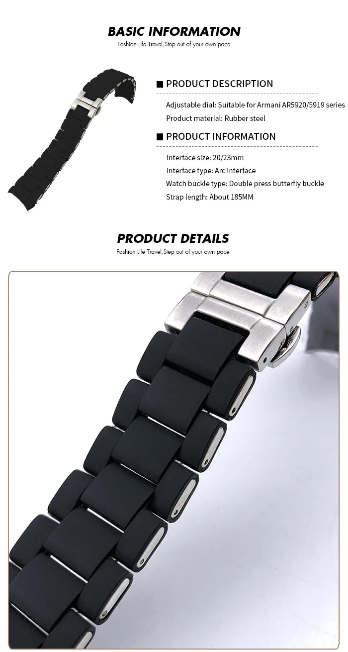 Ремешок для часов стальной резиновый, черный, коричневый, белый, синий, для мужских и женских часов AR5890589159065905, 20 мм 23 мм
