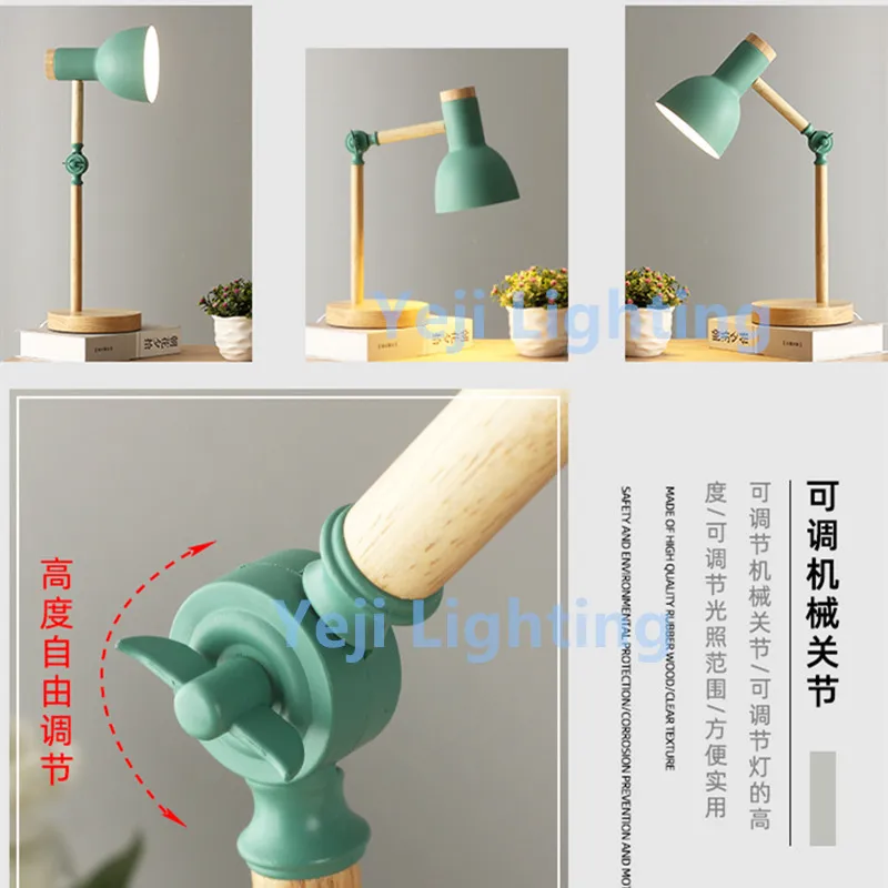 Скандинавская деревянная настольная лампа E27, детское комнатное освещение для чтения, светодиодная настольная лампа для спальни и кабинета