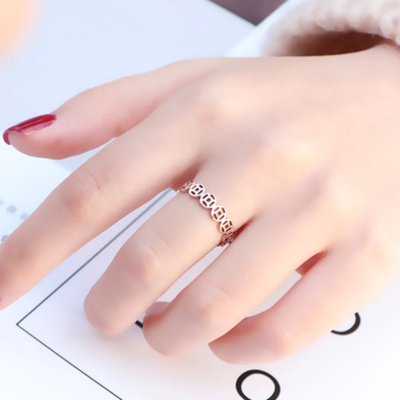 Милое кольцо SHOUMAN из розового золота с монетой и хвостом для женщин и девушек, подарок, ювелирные изделия из нержавеющей стали 316L с высокой полировкой, предотвращающей аллергию