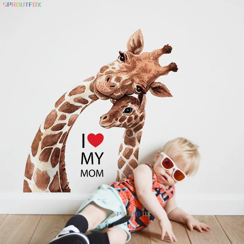 Наклейки на стену в форме жирафа сделай сам с жирафом и малышом, домашнее украшение для детской комнаты, спальни, милый анимовый художественный постер, виниловые Съемные наклейки