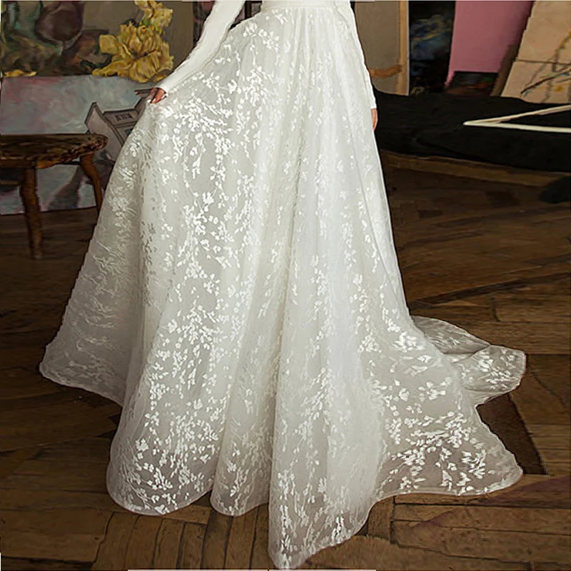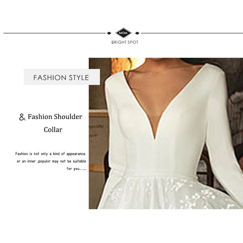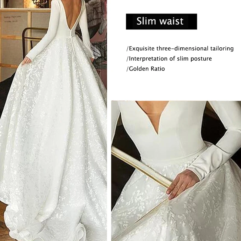 Свадебное платье невесты можно настроить Глубокий V-образный вырез открытая спина ретро с длинным рукавом кружева атласное свадебное платье со шлейфом