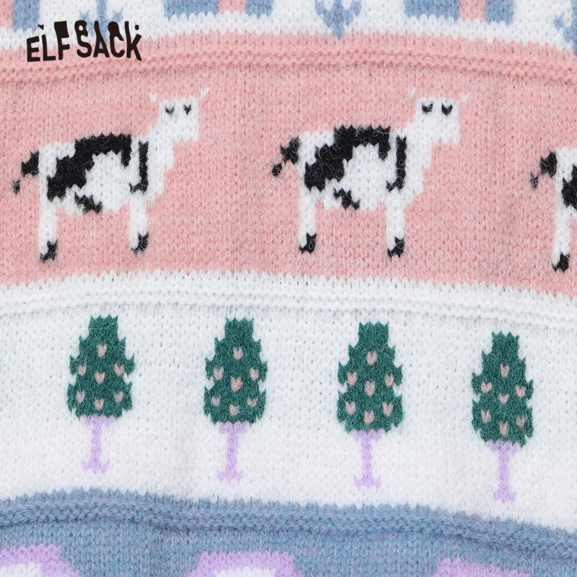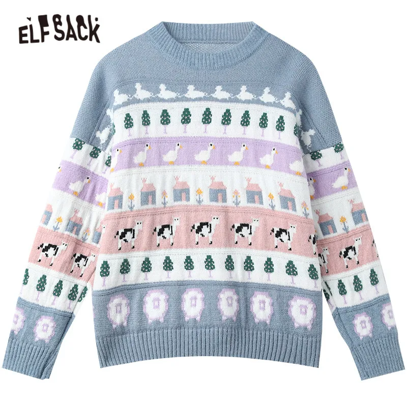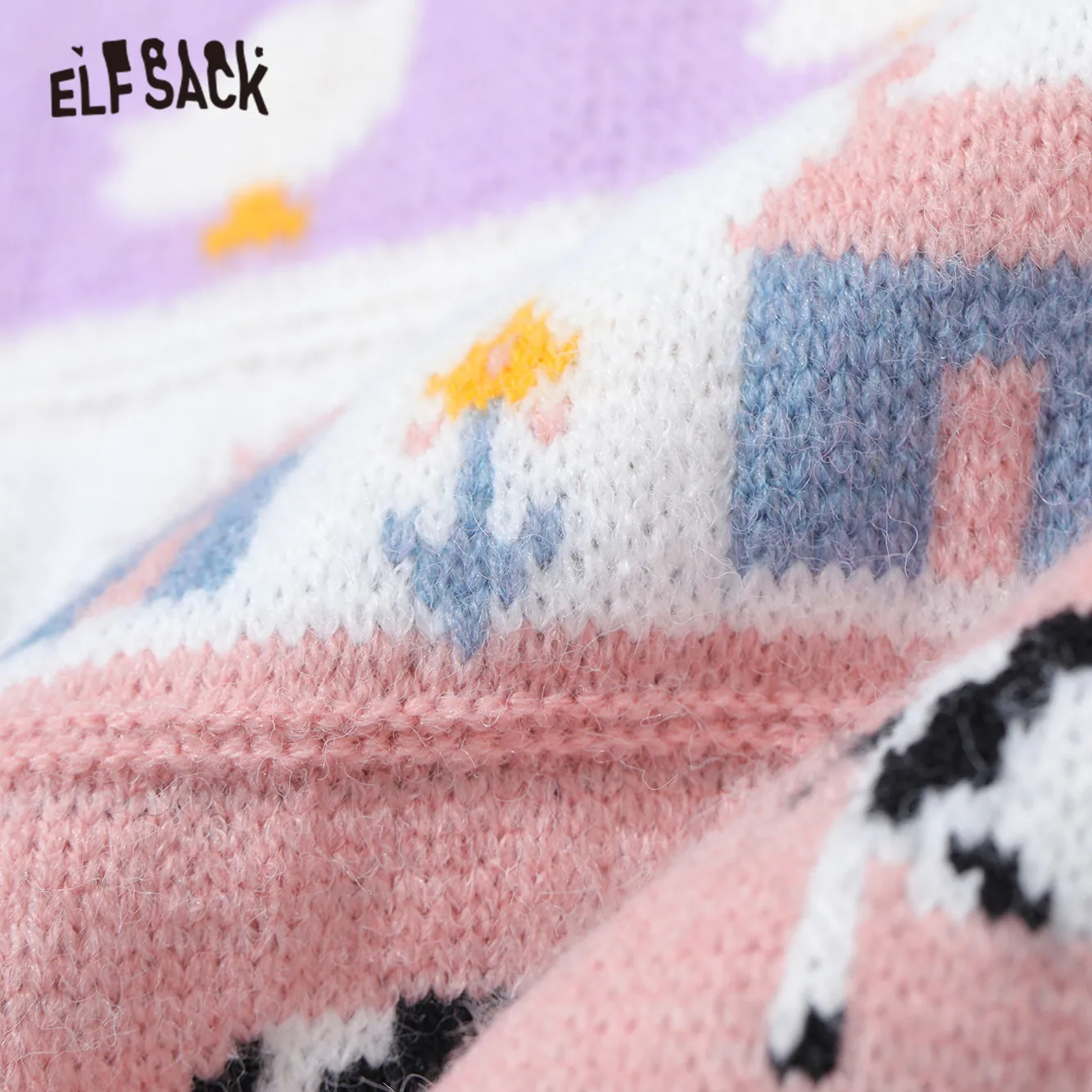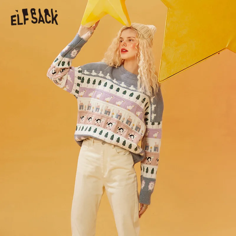 Вязаный жаккардовый пуловер ELFSACK в Корейском стиле для женщин, винтажный Повседневный милый свитер с длинным рукавом для девушек, зима 2020