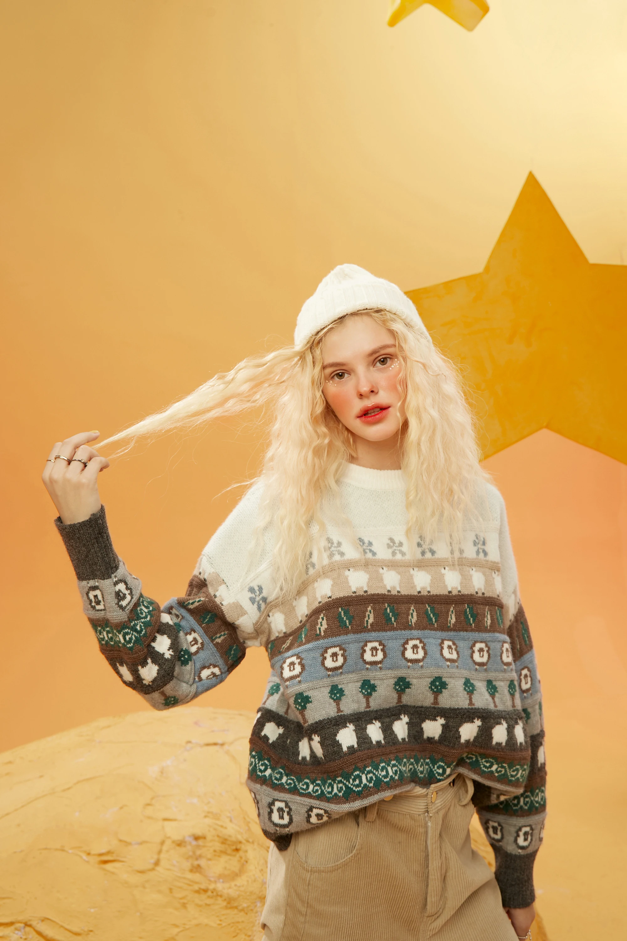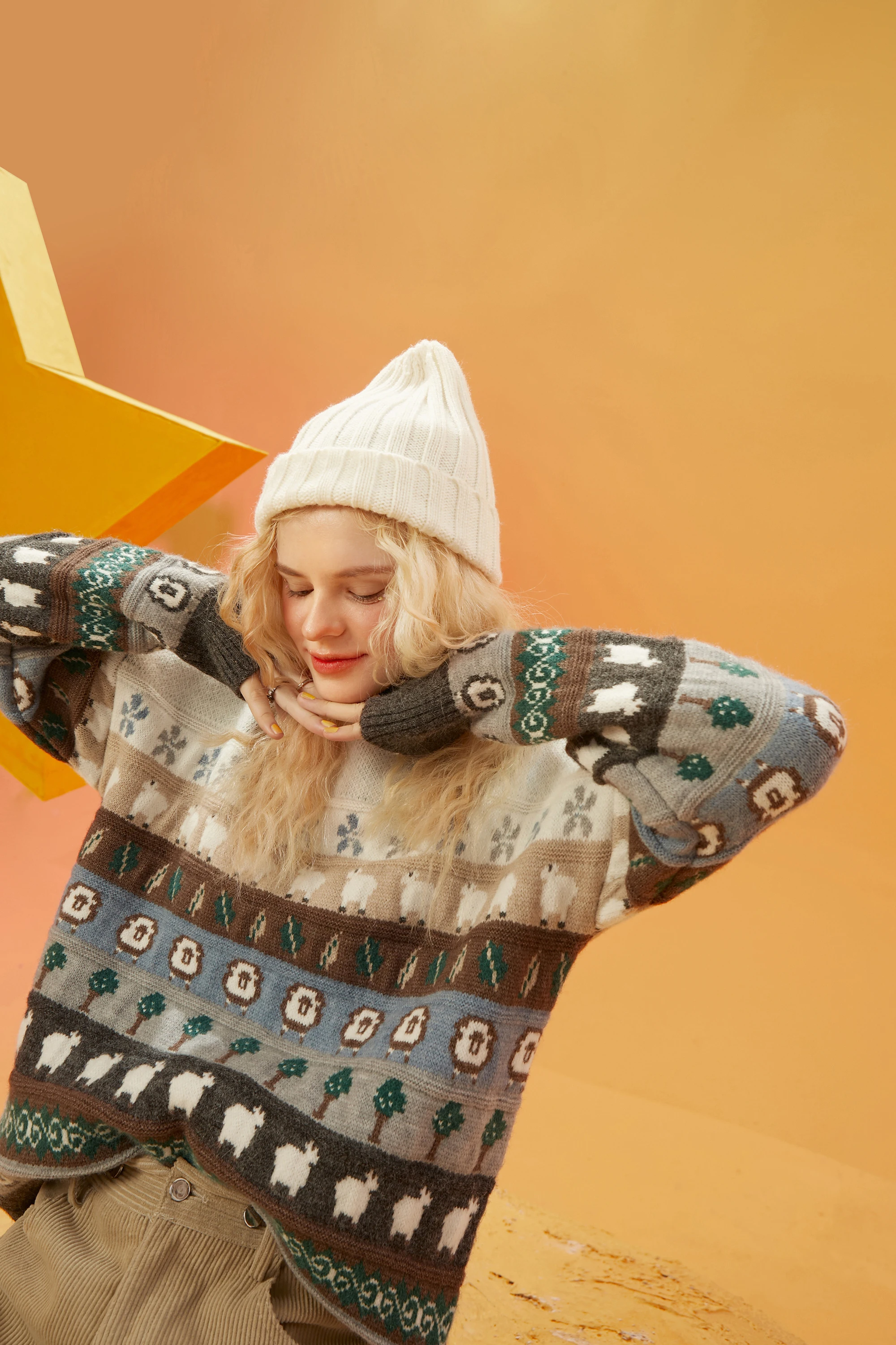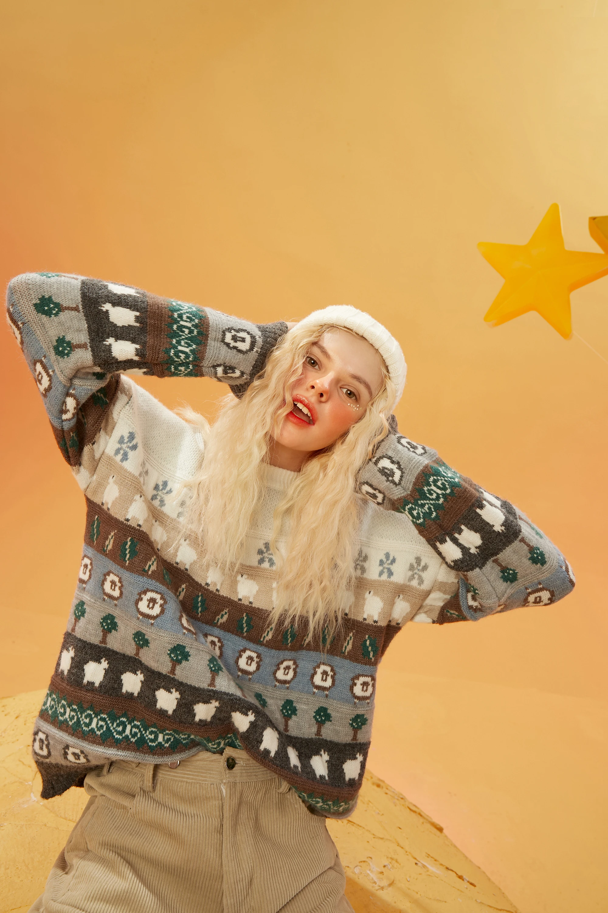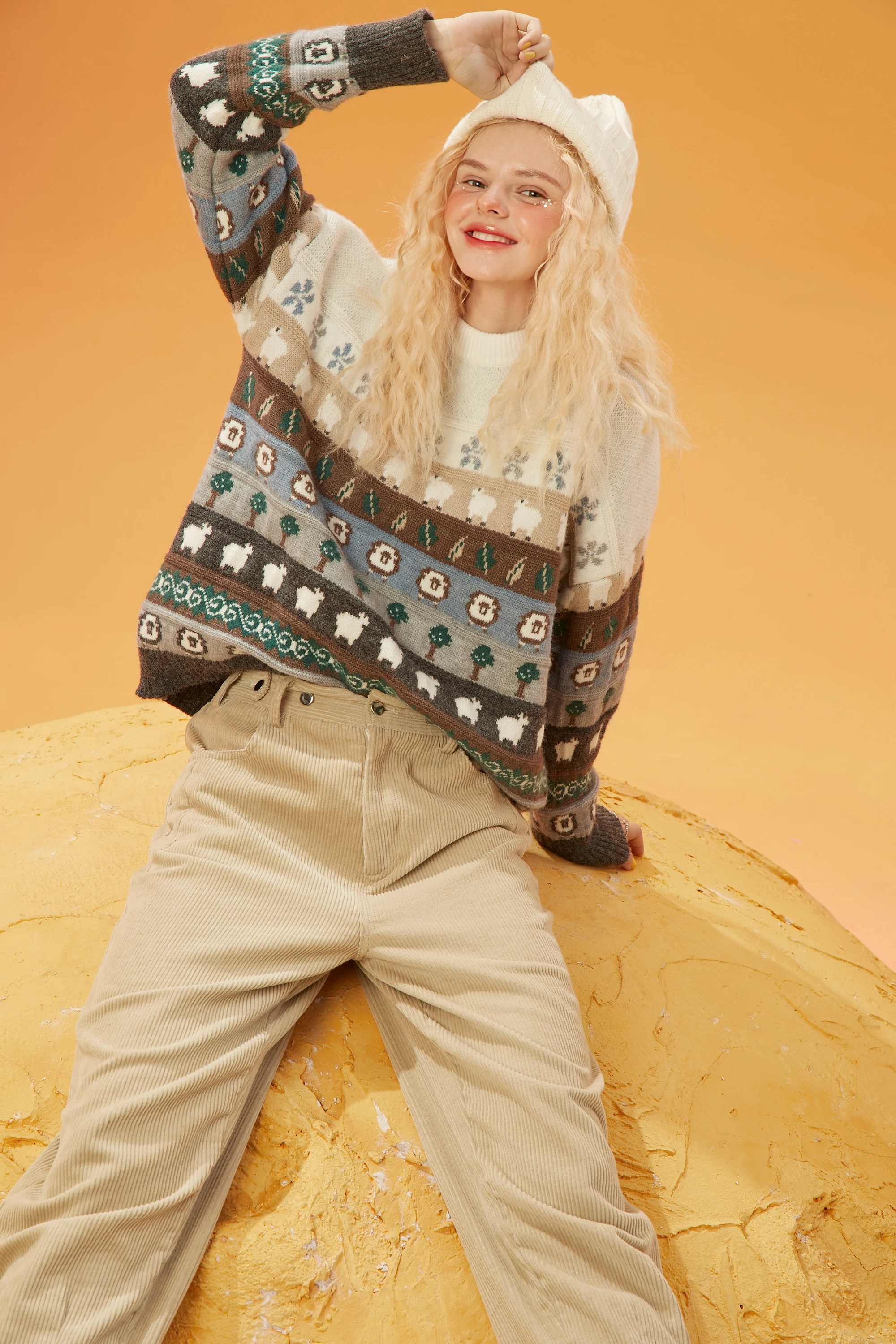 Вязаный жаккардовый пуловер ELFSACK в Корейском стиле для женщин, винтажный Повседневный милый свитер с длинным рукавом для девушек, зима 2020