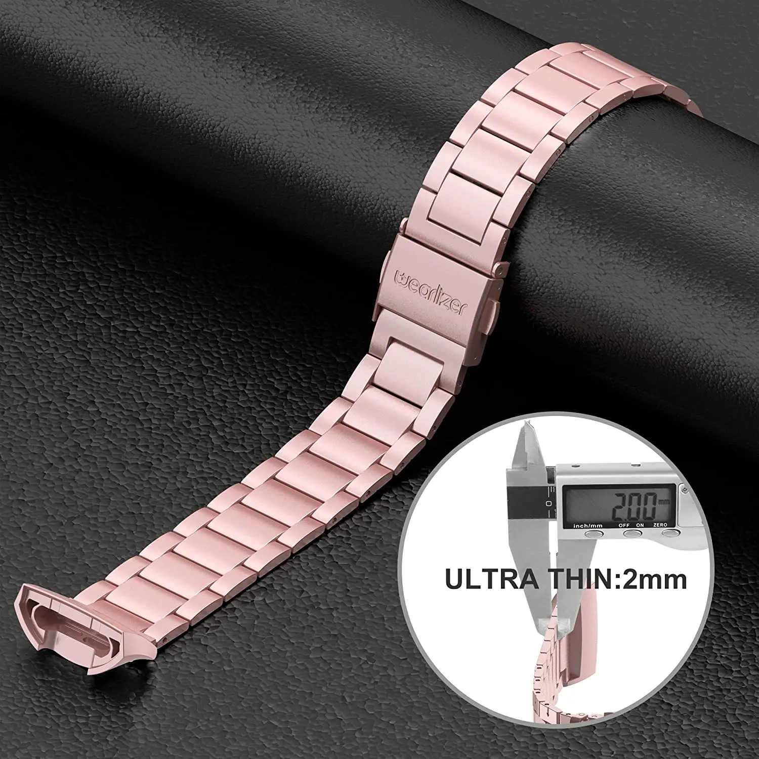 Описание: Предназначен для Fitbit заряд 3/4 записывающие устройство подходит водонепроницаемы 5,5 "-8,1"(135 мм-208 мм); Мода, благородство, долговечность и элегантность; Подходит для любого события [Премиум Материал] высококачественный материал из нержавеющей стали и производство с адаптером на обоих концах принимает уникальную двойную раскладную застежку с застежкой-бабочкой, складывающуюся застежку, чтобы надежно закрыть, и предотвращает ослабление автоматически, безопасный и элегантный Посылка включает в себя: 1 браслет на запястье 1 x Регулируемый инструмент