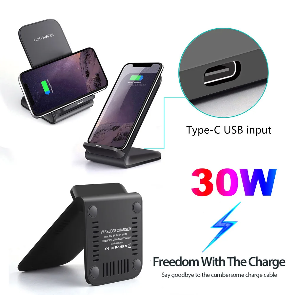 Беспроводное зарядное устройство FDGAO 30 Вт20 Вт15 Вт Qi для iPhone 12 11 Pro X XR XS Max 8 Plus Samsung S20 S21 Type C Быстрая зарядка держатель для телефона
