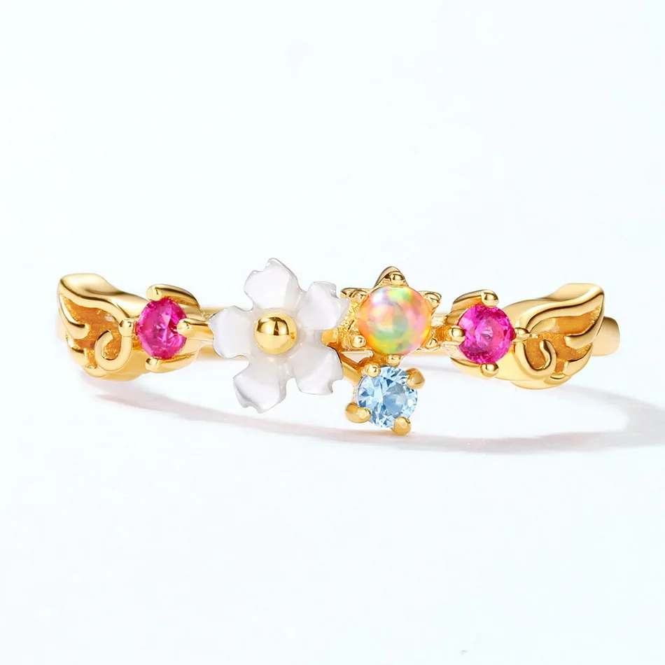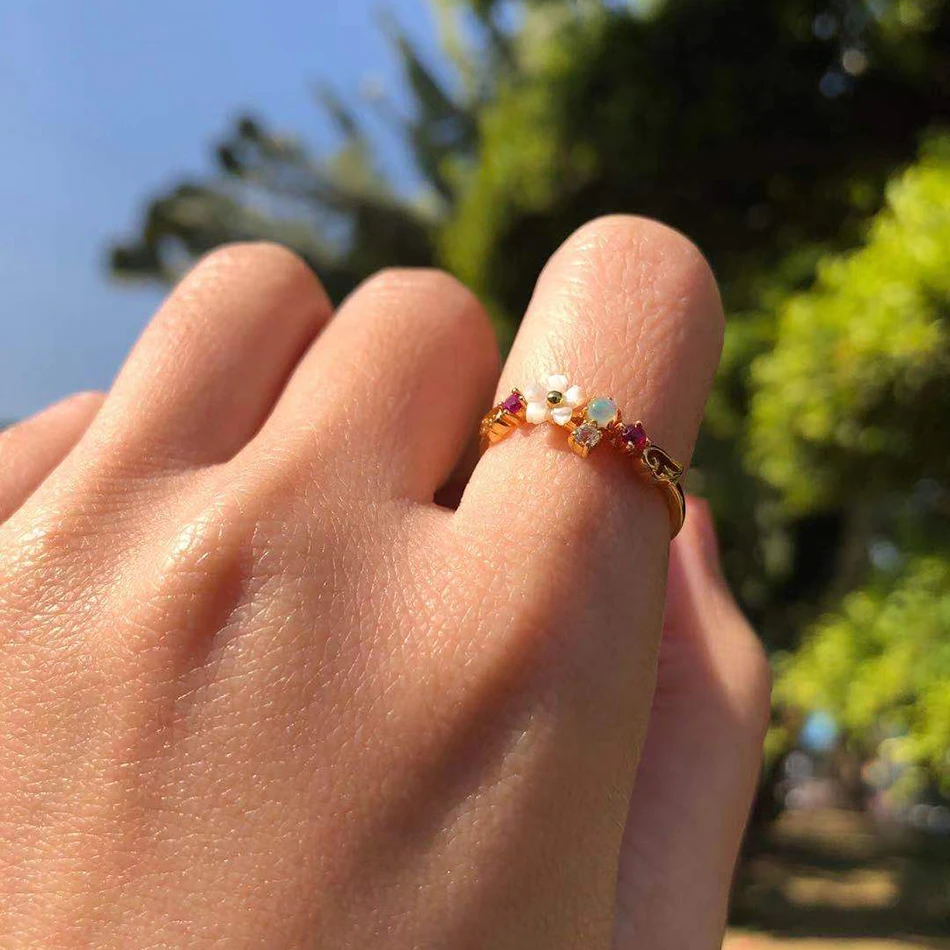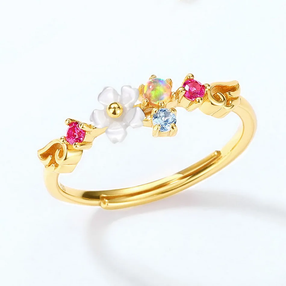 Женские кольца ALLNOEL из стерлингового серебра 925 пробы с искусственным опалом и белым цветком в виде ракушки, регулируемые ювелирные украшения из Красного Корунда, Новое поступление