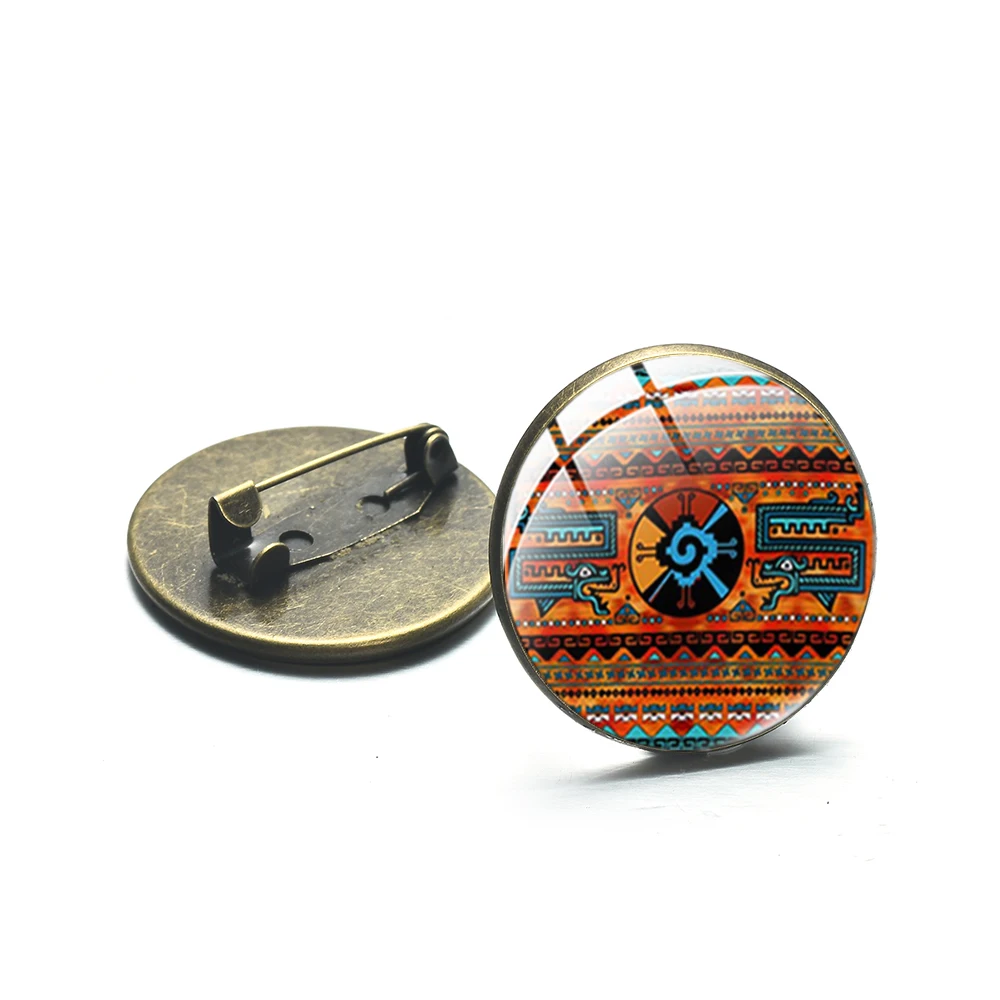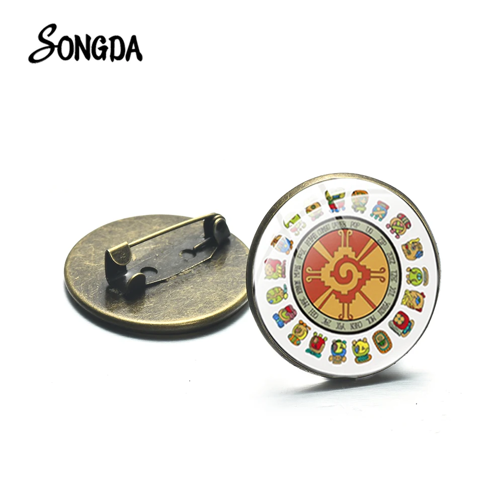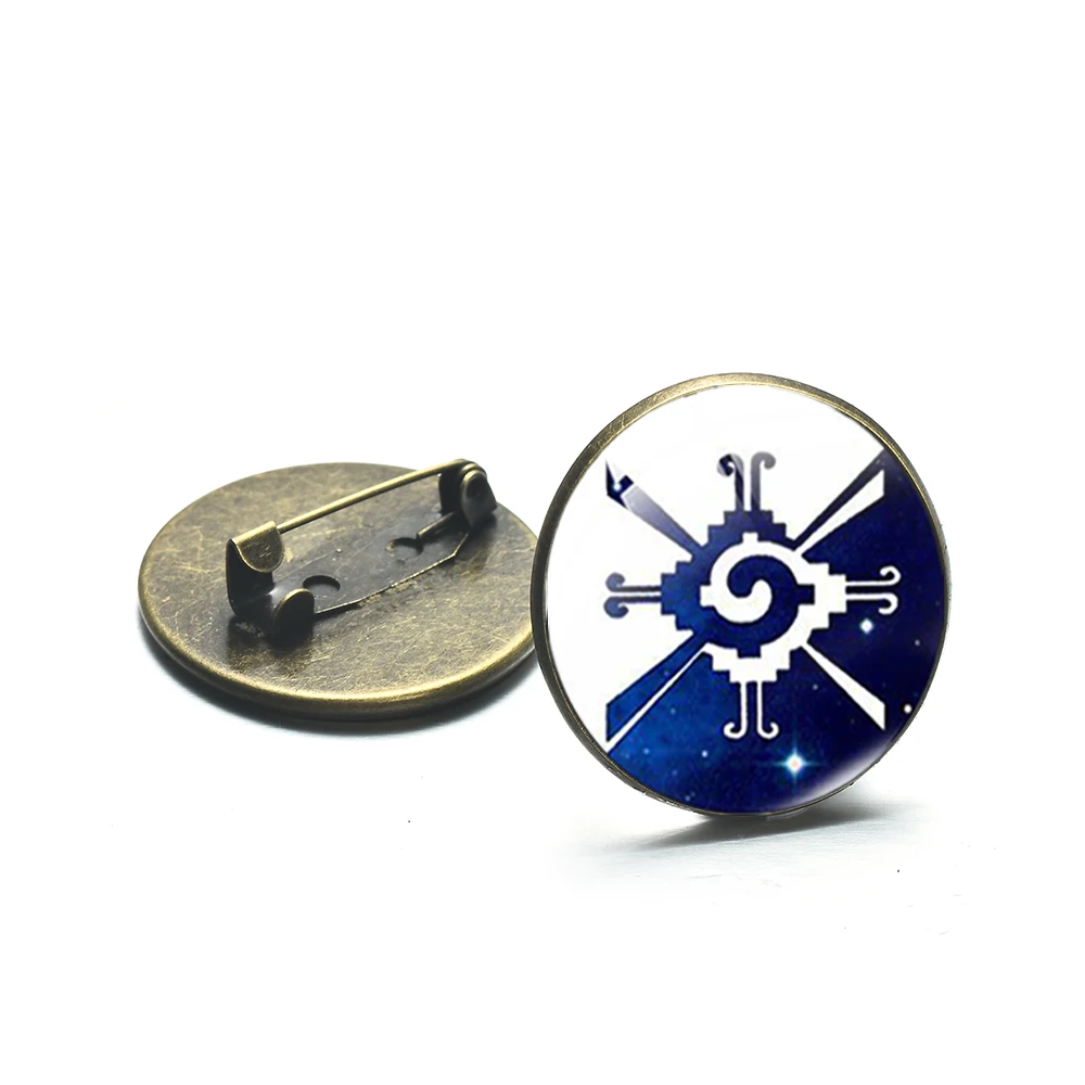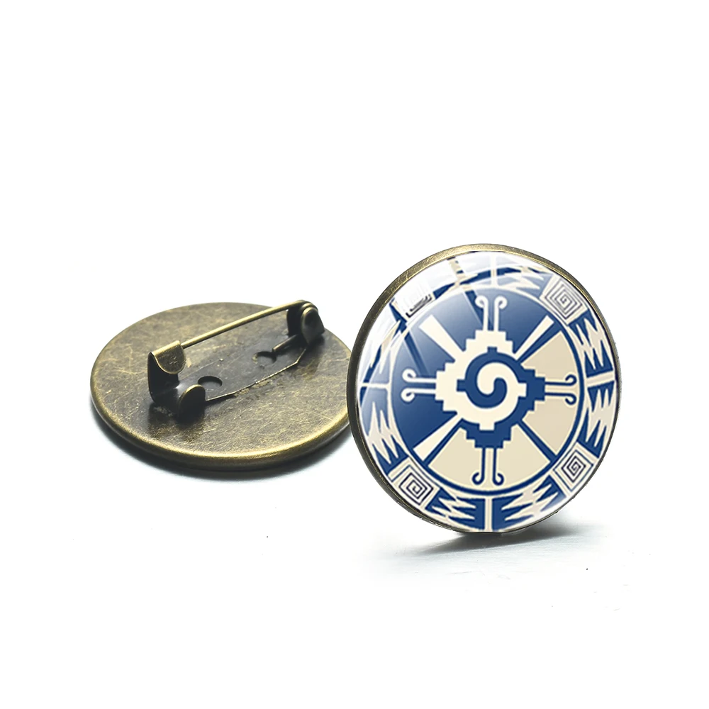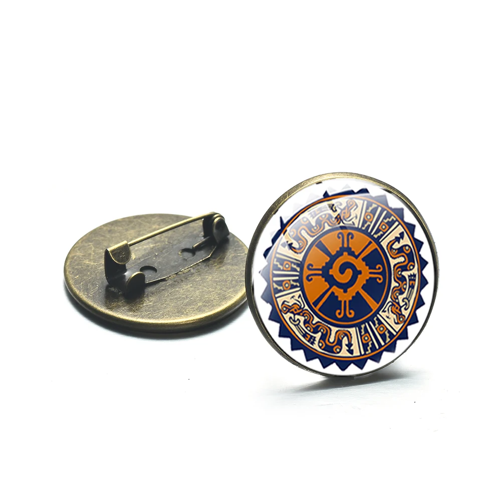 Античная бронза Цвет Hunab Ku майя, брошь с застежкой, защита от солнца Sigil Мексиканская крест символ с живописным узором Стекло круглый кабошон булавка для воротника в форме значок