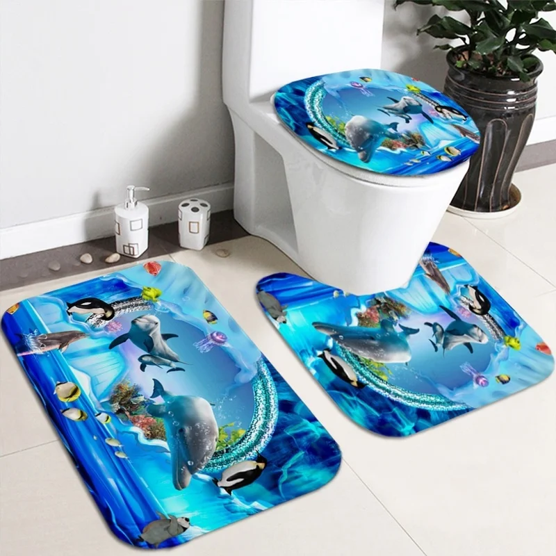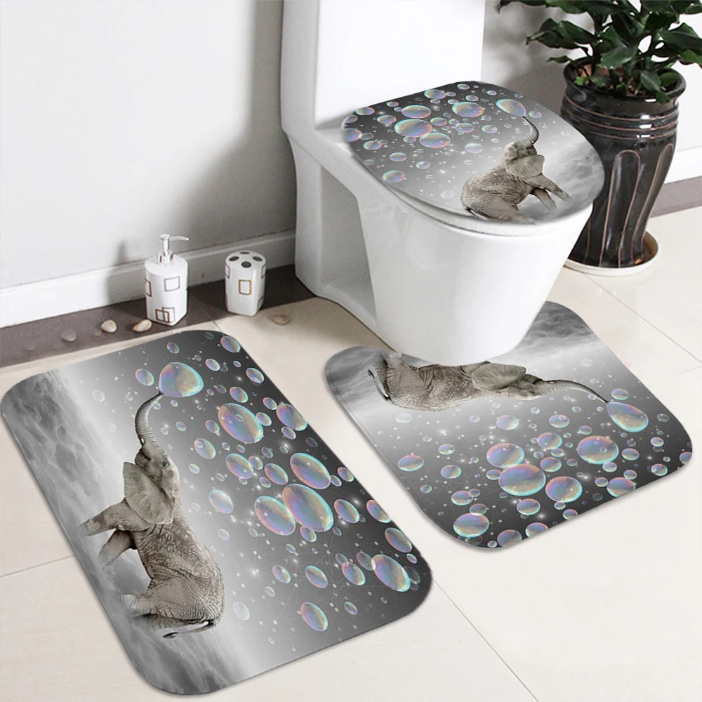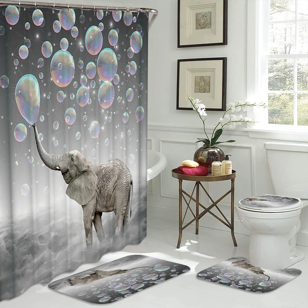 Набор для ванной комнаты с 3D-принтом слона, шторка для глубоководного душа с дельфином океана, 12 крючков, коврик для пьедестал, крышка для туалета, коврик для ванной