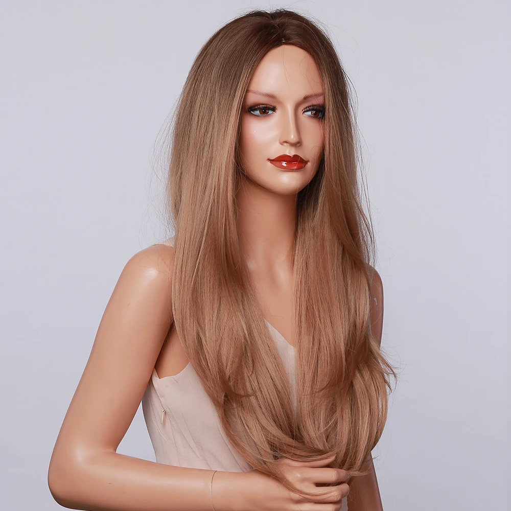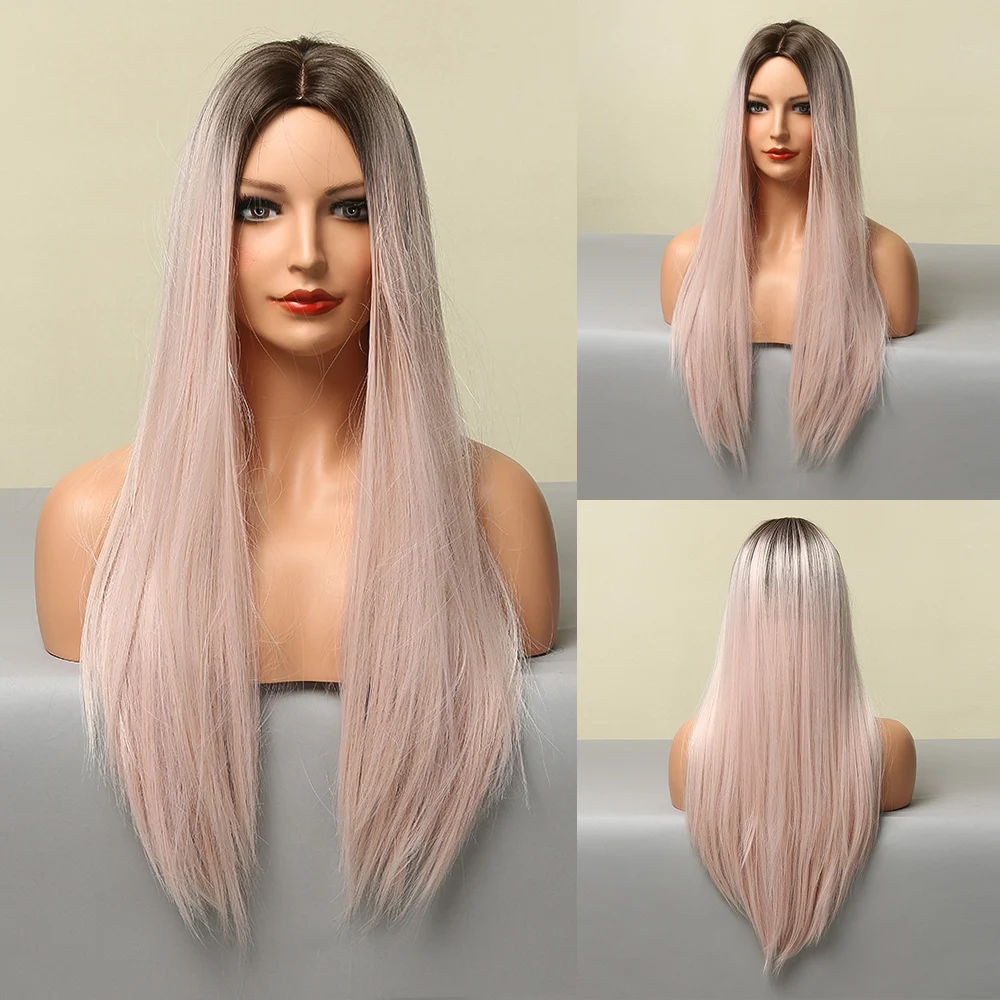 Женские длинные прямые синтетические парики, с эффектом омбре